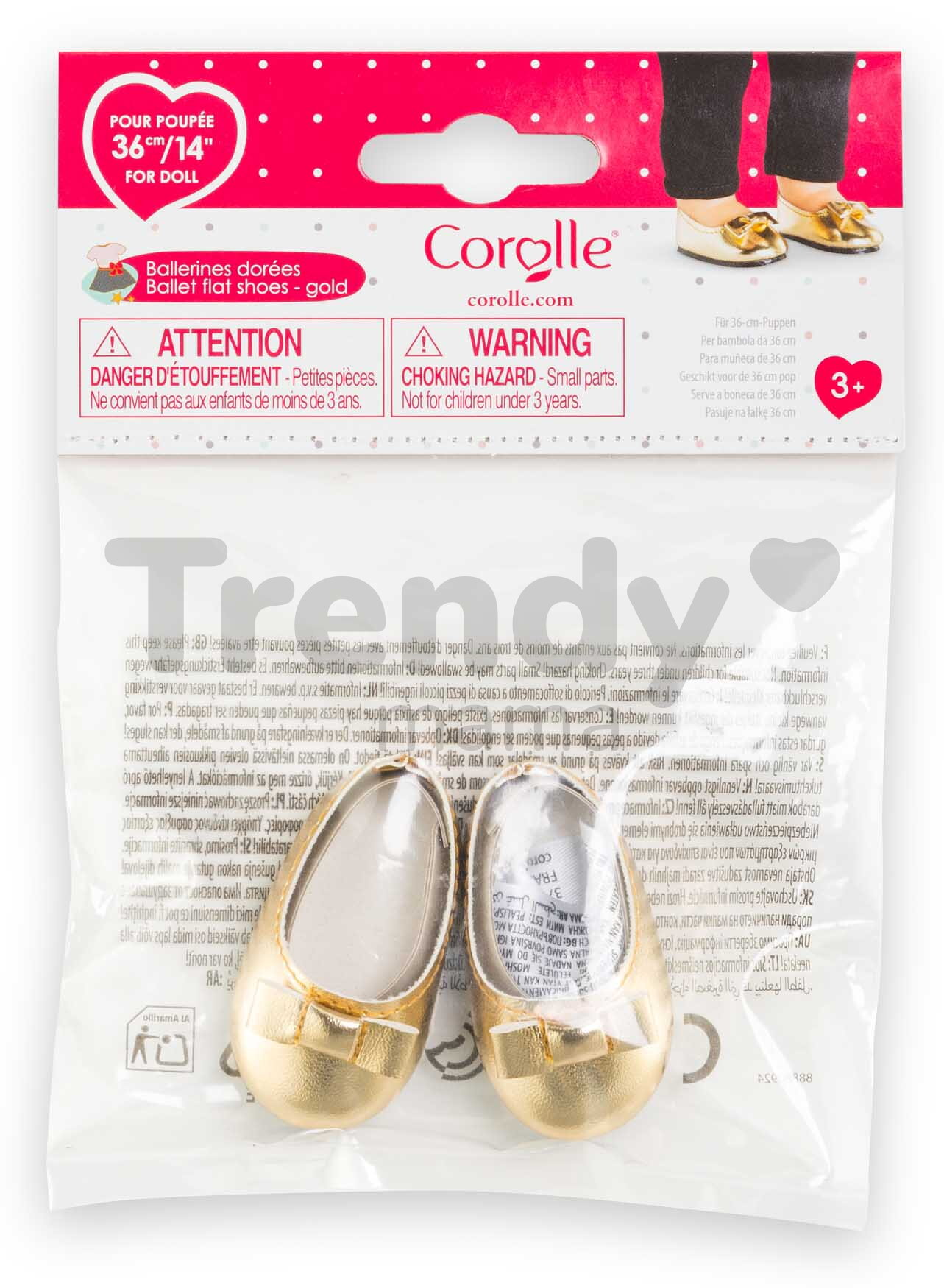 S krásnými zlatými balerínkami mohou děti svou panenku přezouvat a převlékat kdykoli se jim zachce. Dokonale propracované detaily tohoto doplňku pro panenku a prvotřídní materiály zpestří každou hru s panenkou, která rozvíjí dětskou fantazii, ale také komunikační schopnosti a hmatovou citlivost.