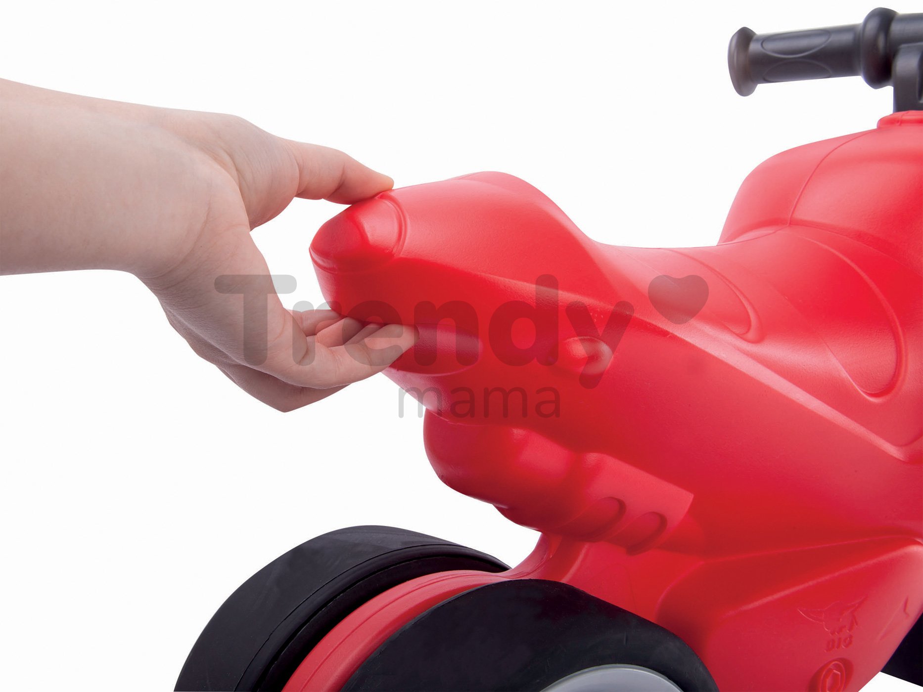 Motorka Street Bike pro děti je úžasné dětské odrážedlo s originálním designem, který připomíná reálnou motorku. Má nádherné červeno-šedé zbarvení, do kterého se zamiluje každý malý jezdec. Dětská motorka má nosnost 25 kg a je přizpůsobena na jízdu v interiéru a exteriéru. Je vhodná pro chlapce i dívky od 18 měsíců. Každé dítě touží po svém vlastním autíčku nebo motorce, proto je odrážedlo BIG splněným snem všech dětí. Odrážedlo ve tvaru motorky je vyrobeno z kvalitních plastových materiálů.