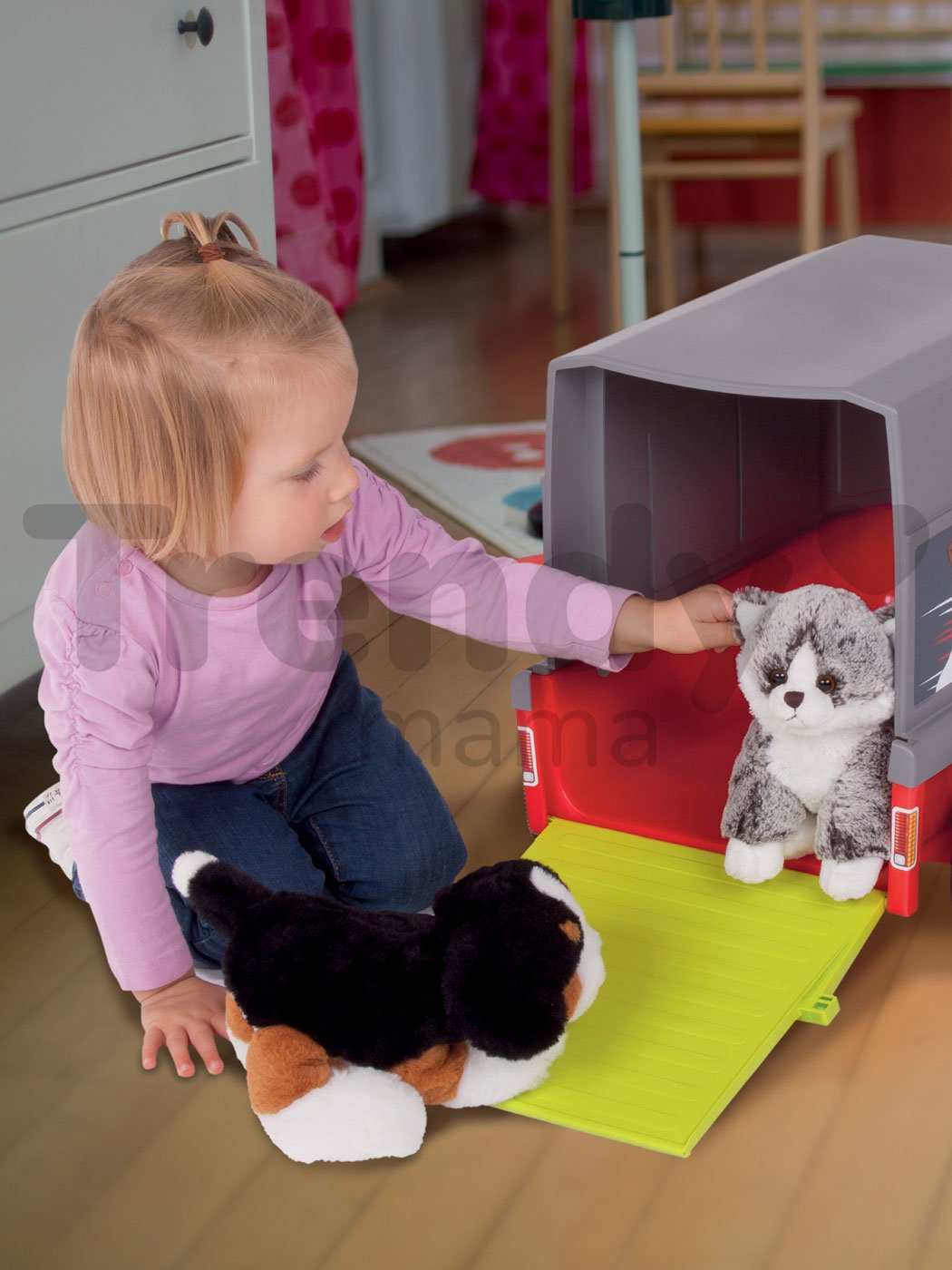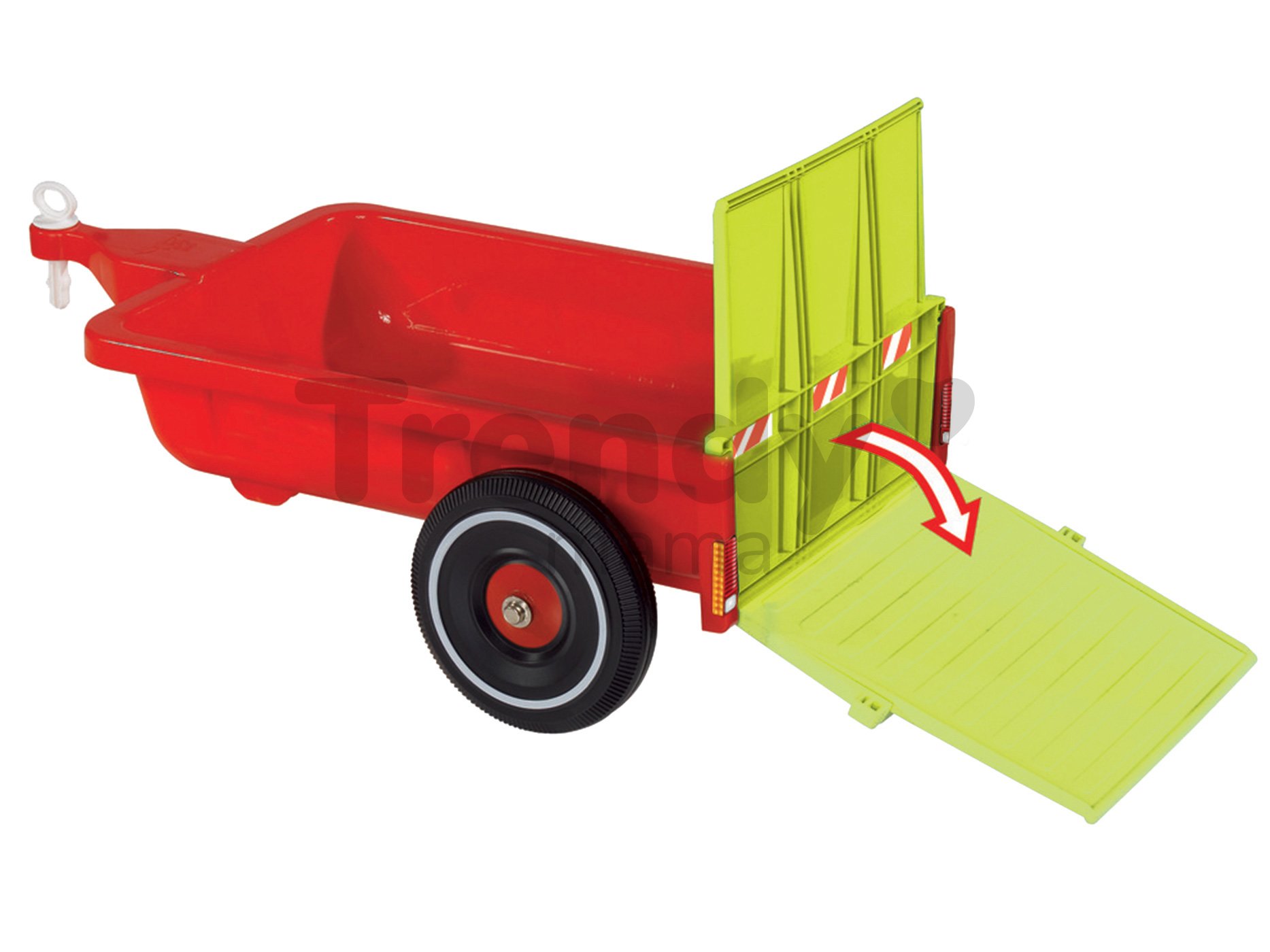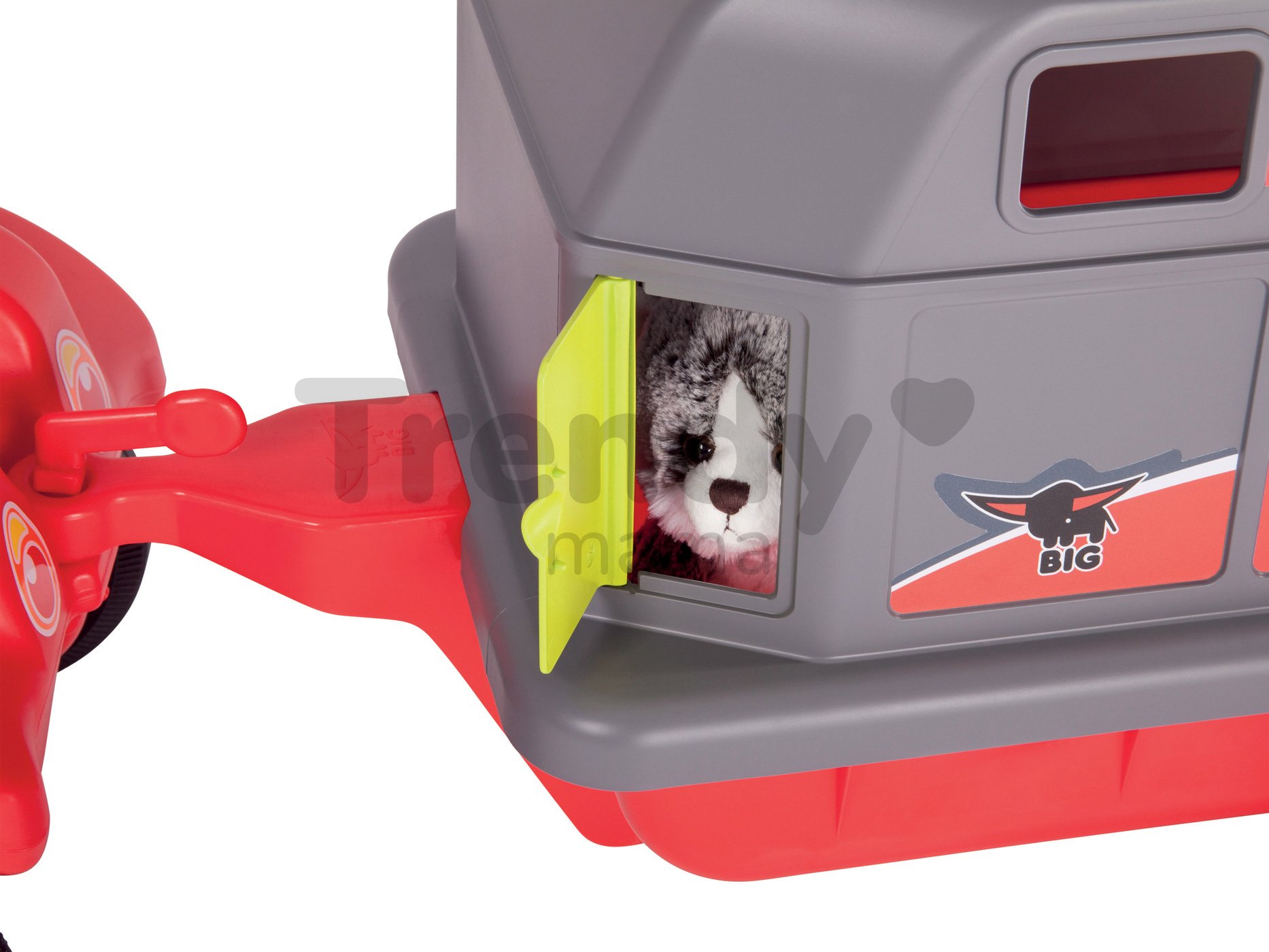 Dětský přívěs má zářivou červenou barvu v kombinaci s šedou. Vrchní vyjímatelná část má na sobě obrázky zvířátek a okénko pro převážené zvířátka, přesně jako na opravdovém přívěsu. V zadní části vozíku na odrážedlo je vyklápěcí plošina, která umožní snadné vyložení nákladu. Vozík k odrážedlu má robustní konstrukci, která je vyrobena z odolných plastů. Měkká kolečka zaručí tichou a pohodlnou jízdu. Dětský přívěs na odrážedlo je chráněn UV stabilizátory, takže bude dlouhá léta zářivý a jeho barvy nevyblednou ani při dlouhodobém používání. Výrobce BIG poskytuje na své výrobky nadstandardní záruku až 3 roky, proto tato hračka vašim dětem vydrží opravdu dlouhou dobu.