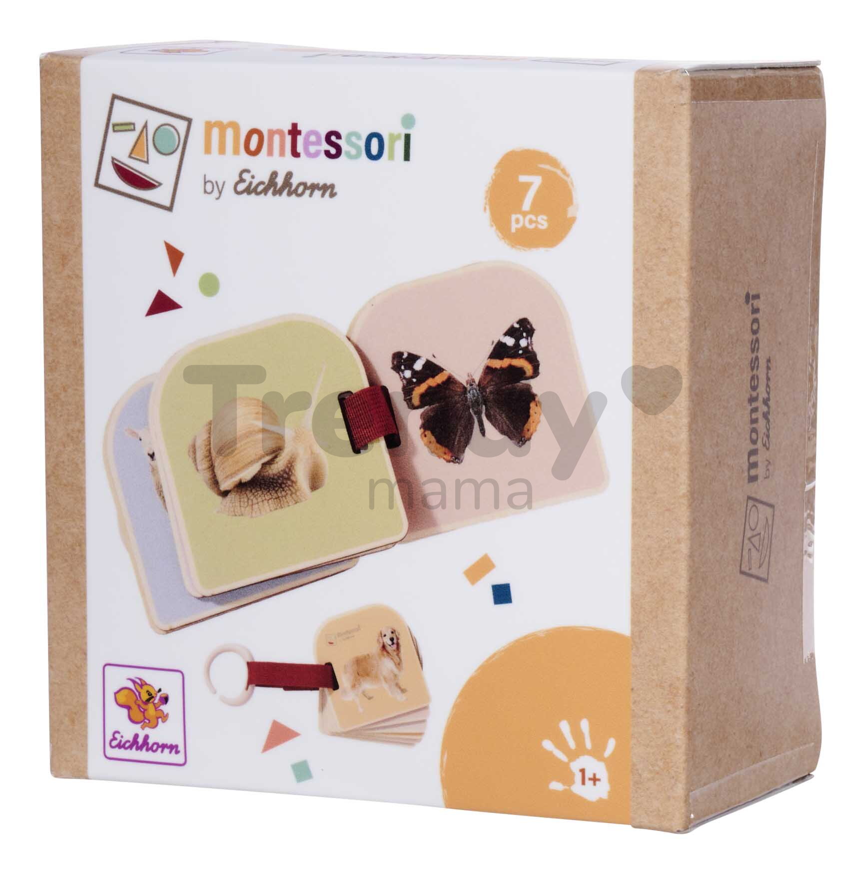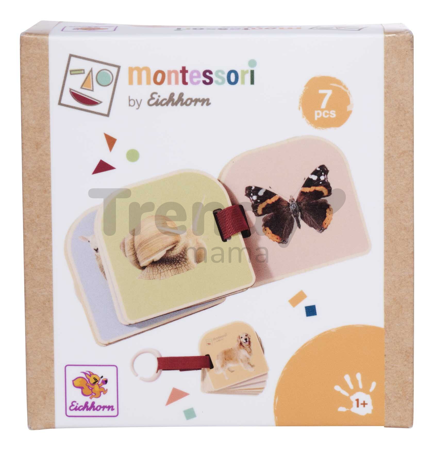 Dřevěná obrázková knížka se zvířátky Montessori Picture Book od německé značky Eichhorn představuje perfektní hračku pro chlapce a dívky již od 12 měsíců. Didaktická knížka z kolekce Montessori je vyrobena z kvalitního dřeva s jemným povrchem, děti díky ní poznávají zvířátka, rozvíjí si fantazii a představivost. Rodiče jim mohou vyprávět veselé příběhy o zvířátkách, díky čemuž se v nich probouzí přirozená zvědavost, získávají sebedůvěru, cítí se útulně a v bezpečí. Knížka obsahuje 12 stran se zvířátky, je upevněna na textilním popruhu a ukončena plastovým kroužkem, díky kterému ji rodiče snadno upevní na kočárek.