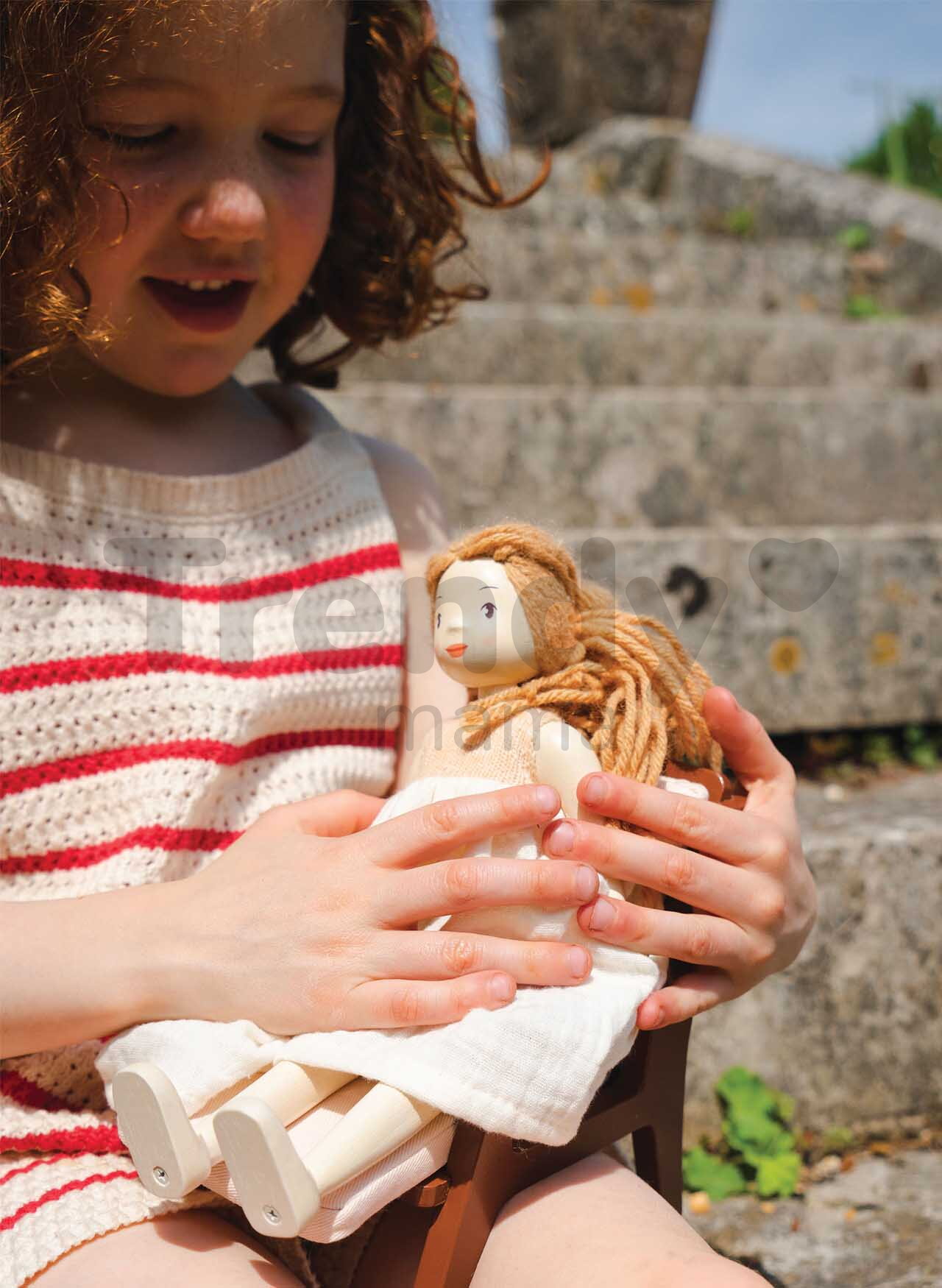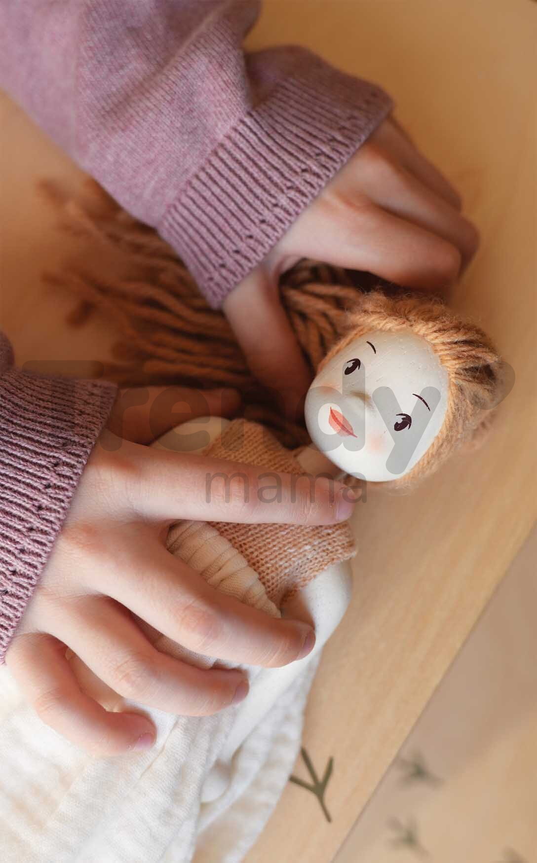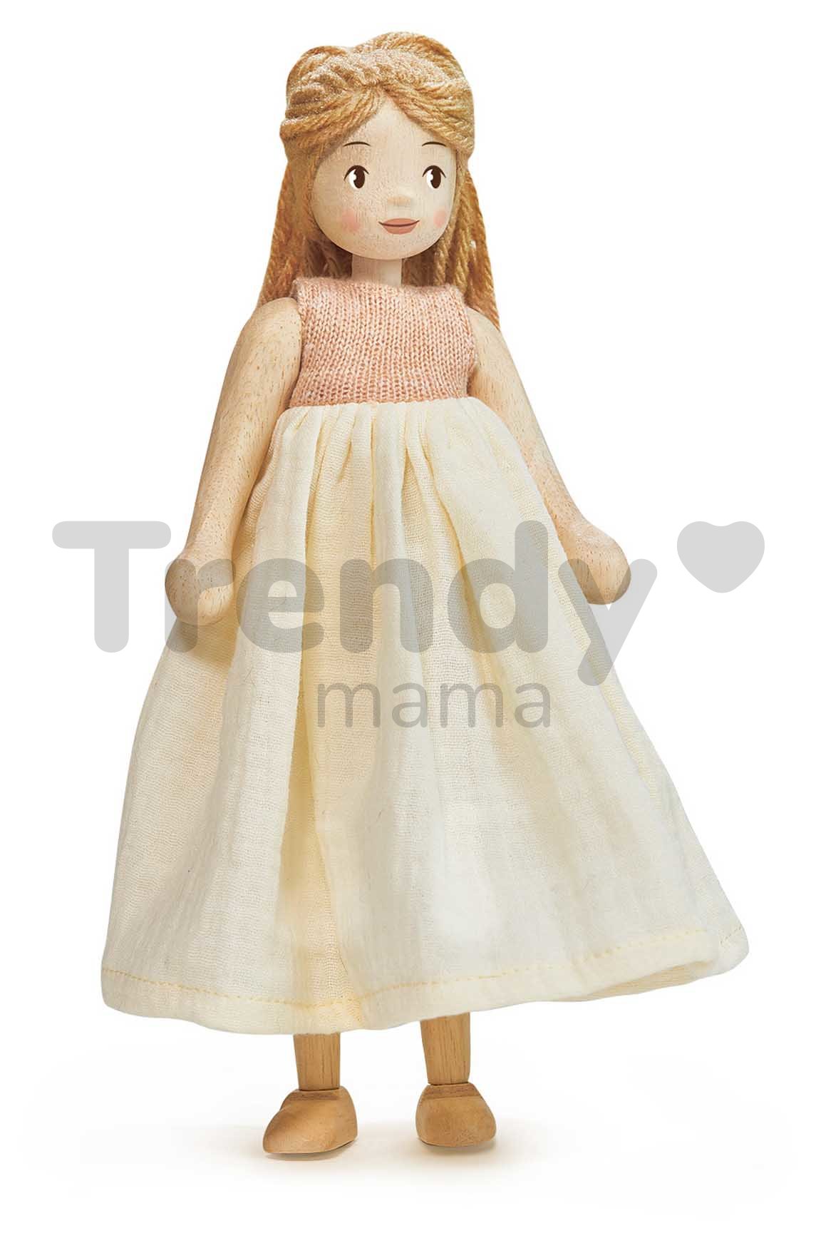 Dřevěná panenka Ferne Wooden Doll představuje vynikající dárek pro všechny děti a zejména holčičky od 3 let. Originální panenka je vyrobena z prvotřídního kaučukového dřeva, vyznačuje se precizně vypracovanými detaily. Panenka Ferne s dlouhými světlými vlásky je oblečená v jemných pletených šatech s mušelínem, které lze snadno obléknout a svléknout. Panenka Ferne okouzlí děti na první pohled a díky výšce 25 cm se stane ozdobou každého dětského pokojíčku. Dokáže samostatně stát a má pohyblivé končetiny, díky čemuž je flexibilní a přinese dětem větší zážitek při hře.