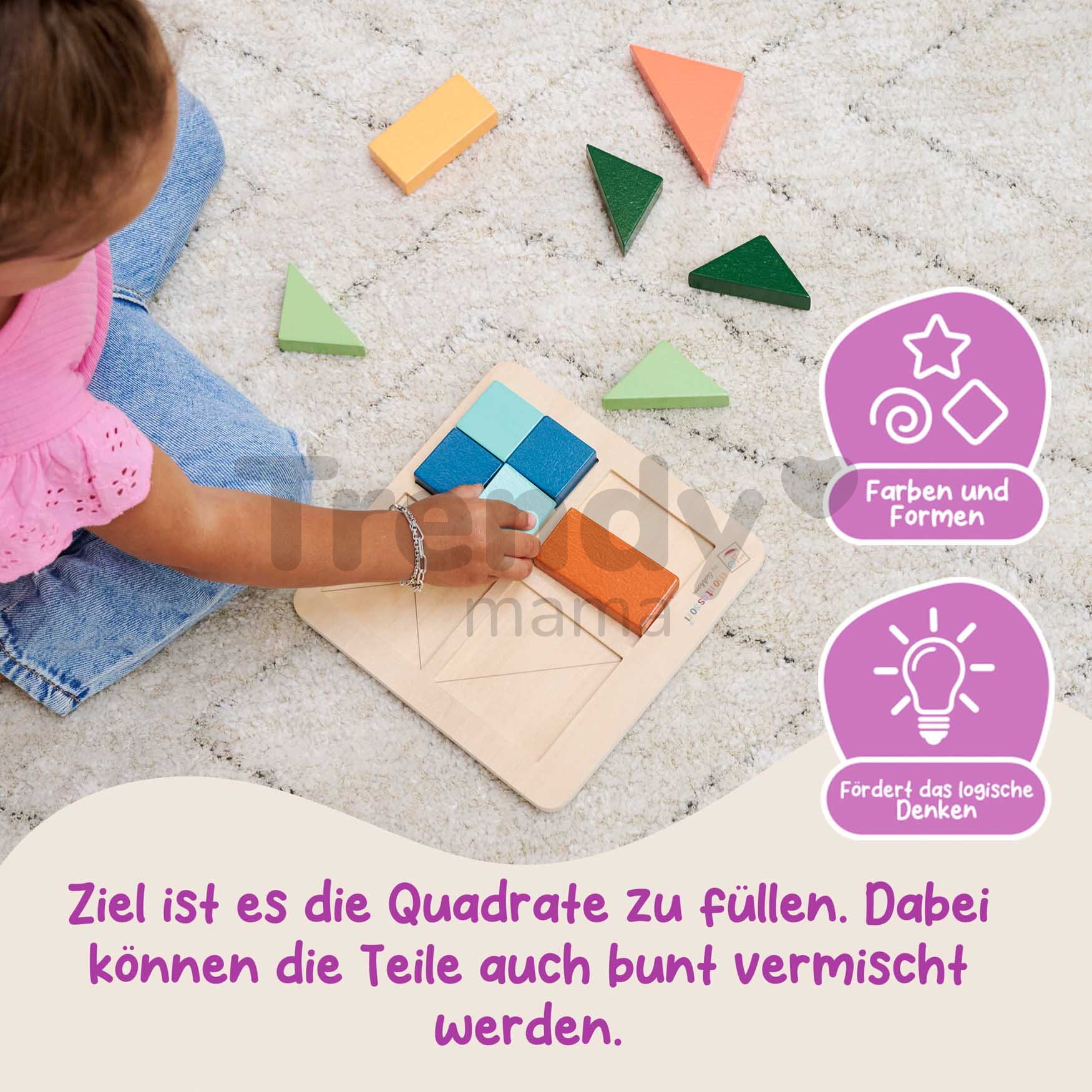 Dřevěné didaktické hračky Montessori jsou důležité pro vývoj každého dítěte, zvyšují aktivitu jejich mozku, formují jejich osobnost, dovednosti i dovednosti. Dřevěné vkládací puzzle jsou vyrobeny z kvalitního dřeva s hladkým povrchem, nabídnou dětem příjemný pocit při hraní. Děti při hře s kostkami poznávají i nové barvy, po každém dokončeném puzzle získávají zdravé sebevědomí. Rozměry dřevěné základny se 4 otvory pro puzzle vkládačky jsou 18*18 cm.