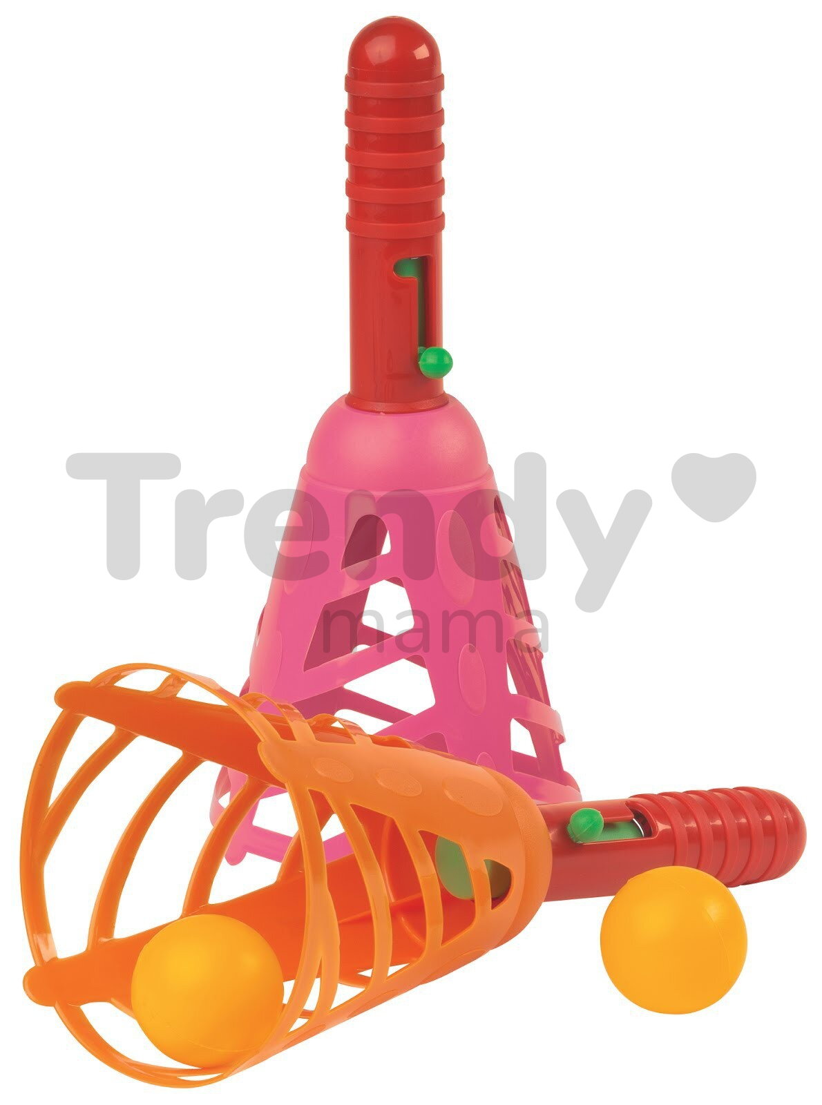 Hra s míčky, určená především pro dva hráče, ale dítě se s hračkou umí zahrát i samy. Hru tvoří dva plastové košíky - jeden oranžový a jeden růžový - a dva míčky. Míčky i košíky jsou vyrobeny z kvalitního lehkého plastu a jde o bezpečnou hračku, při níž nehrozí nebezpečí úrazu. Rakety mají rozměr 23*15*15 cm. Cílem této zábavné hry je za pomoci jednoduchého pružinového systému, ukrytého v raketě, vystřelit míček směrem k spoluhráči tak, aby ji chytil.