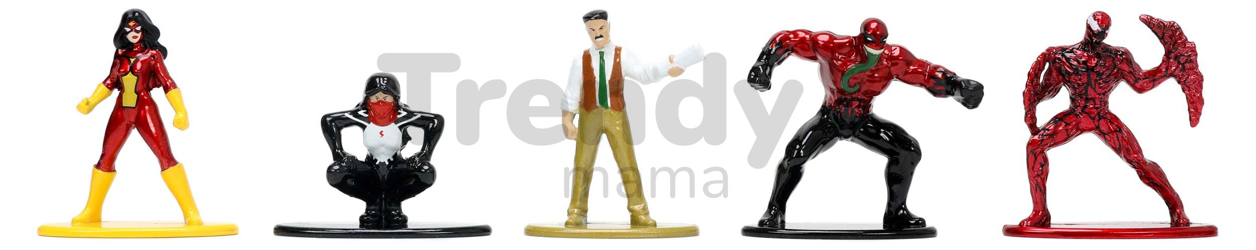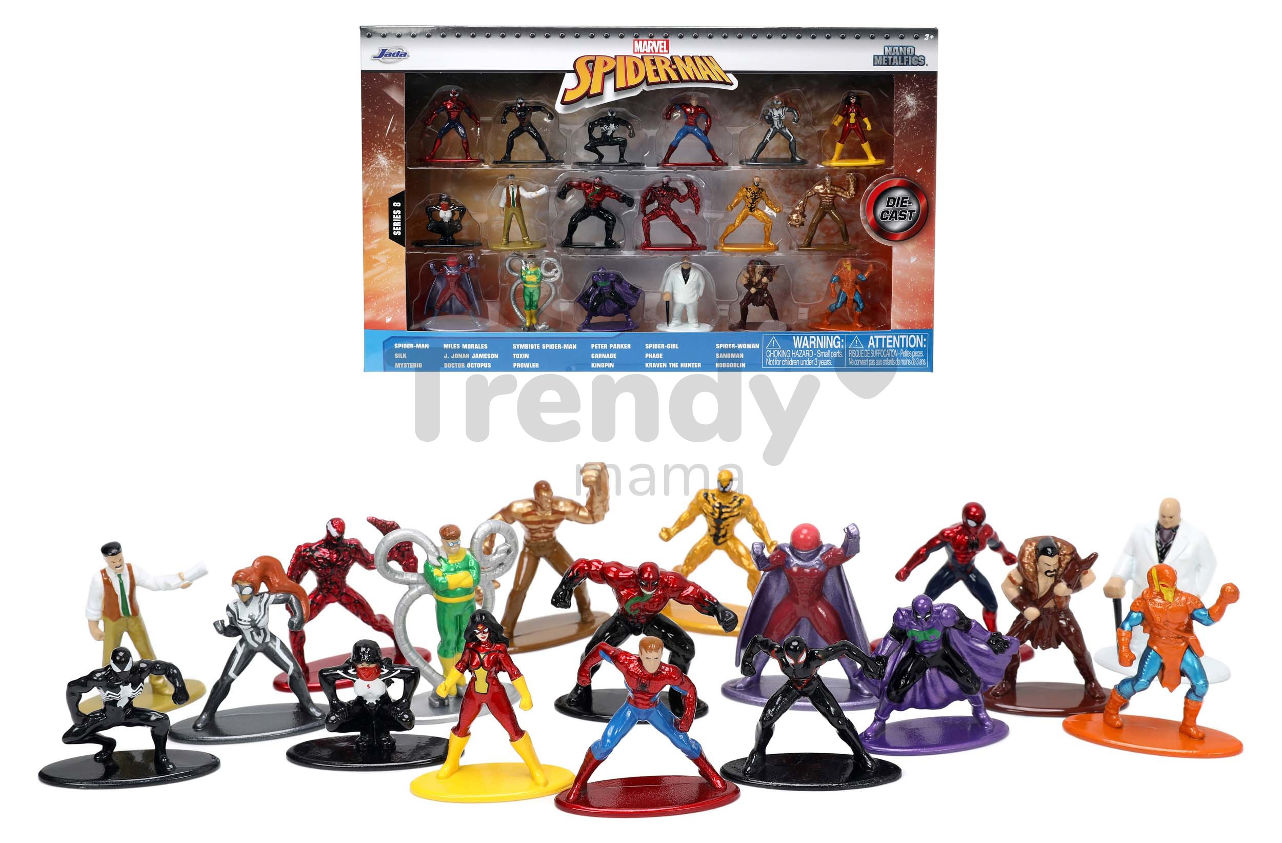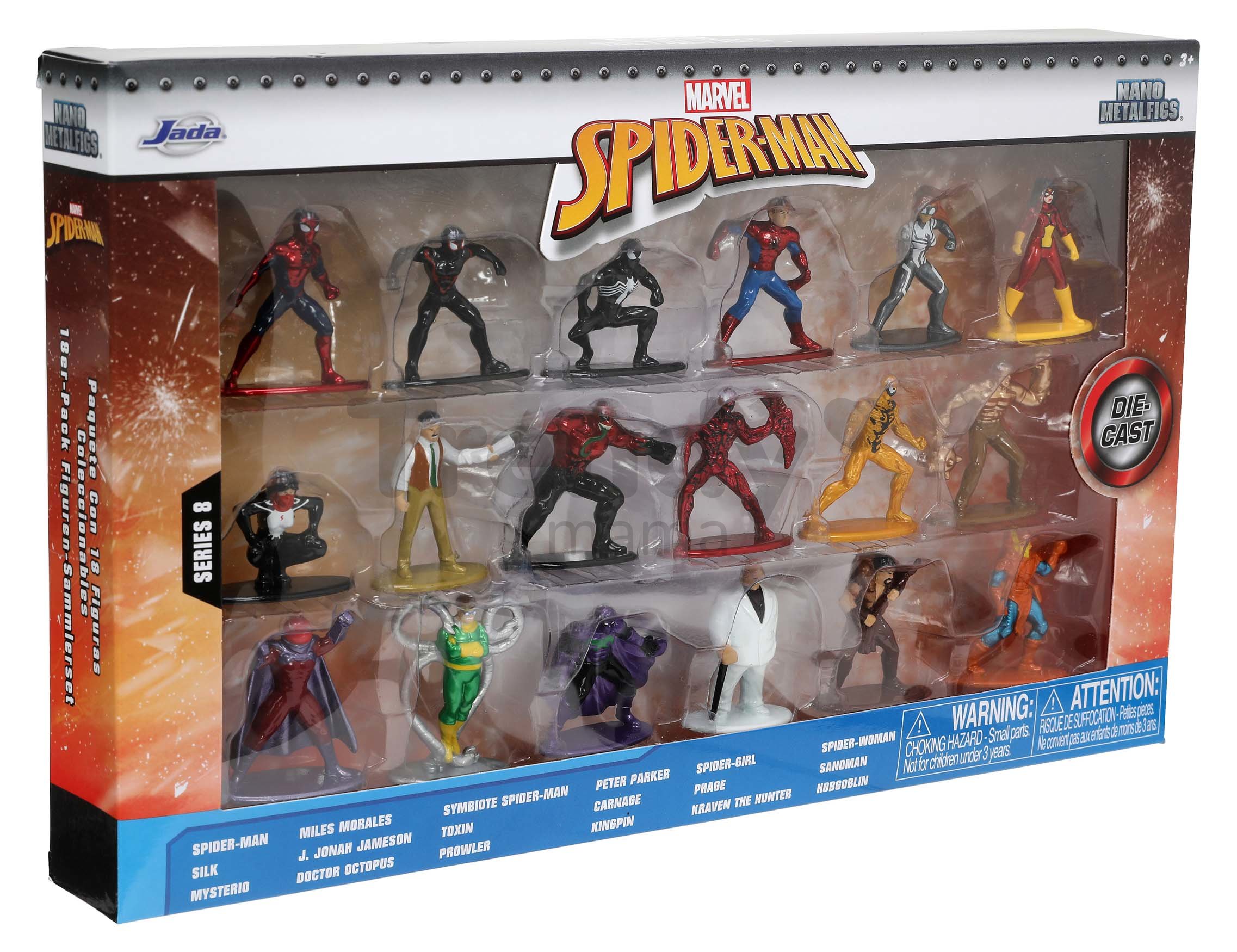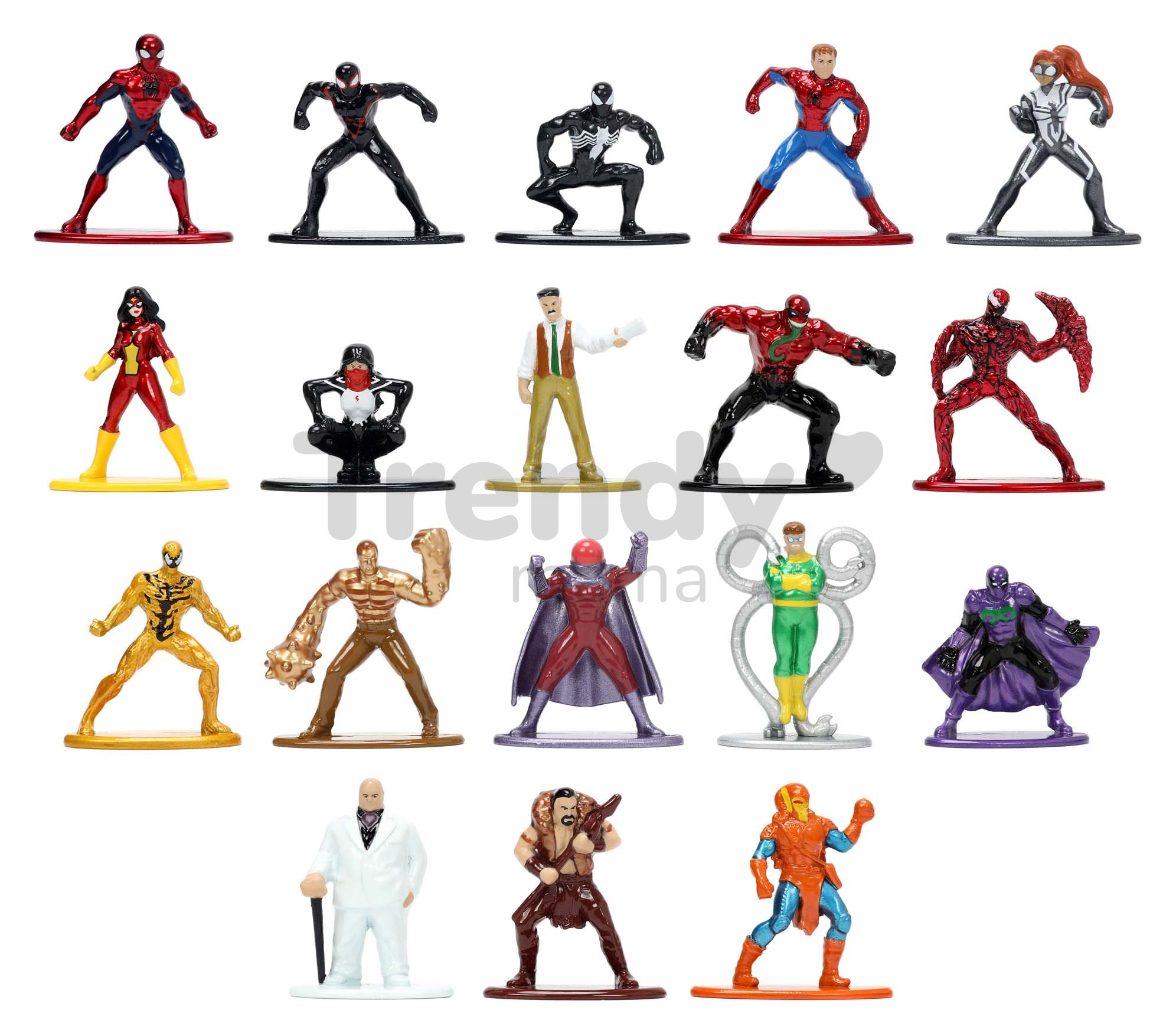 Sběratelské figurky Multi Pack Nano Figures Wave 8 vznikly na základě licence s filmovým studiem Marvel, takže zaujmou každého nadšeného sběratele figurek superhrdinů. V balení se nachází 18 kovových figurek ze světa Marvel, děti se mohou těšit na postavičky těchto hrdinů: Spiderman, Silk, Mysterio, Miles Morales, J. Jonah Jameson, Doctor Octopus, Symbiote Spiderman, Toxin, Prowler, Peter Parker, Carnage, Kingpin, Spider-girl, Phage, Kraven the Hunter, Spider-woman, Sandman a Hobgoblin. Kovové figurky jsou velmi pevné a odolné, precizně vypracované detaily potěší každého fanouška Spidermana. Výška figurek je přibližně 4 cm.