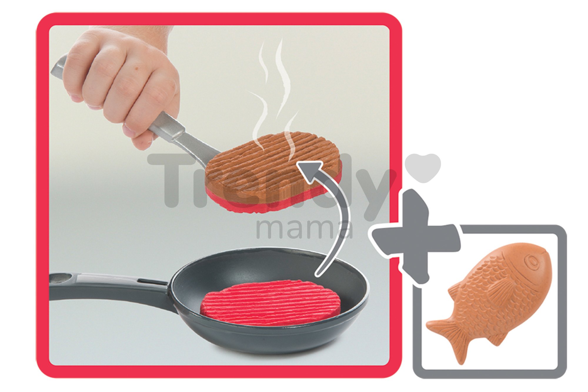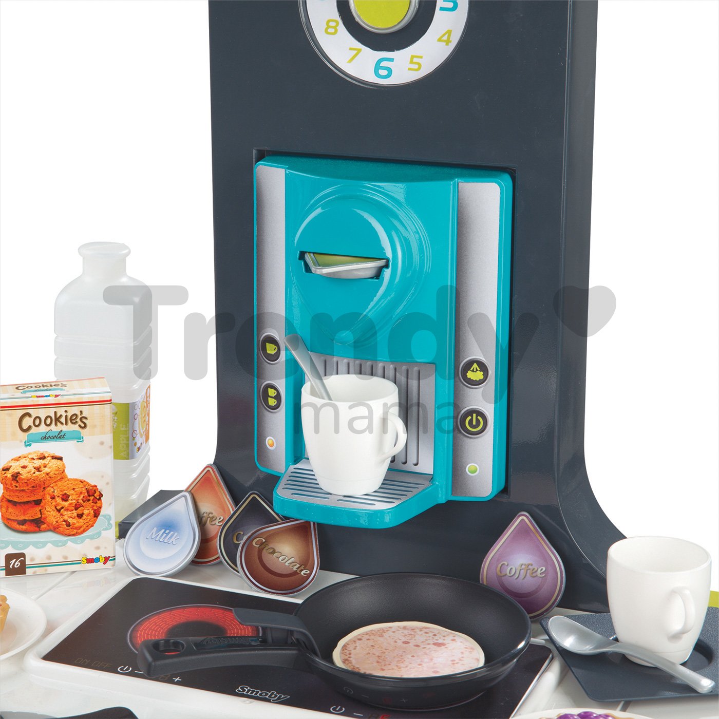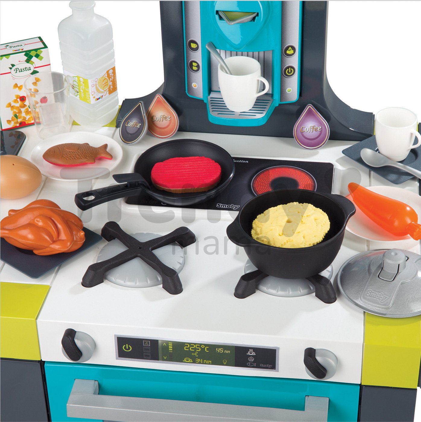 Vařič vydává realistické zvuky jako při vaření Blop Blop Pssschh. V kouzelném hrnci se po položení na vařič uvaří opravdové těstoviny. Dětská kuchyňka má množství kreativních detailů které dělají hru dokonalou. Zajímavým detailem kuchyňky jsou potraviny, které jsou z jedné strany opečené. Dětská kuchyňka obsahuje celkem až 45 doplňků. Mezi ně patří pánev na otáčení placek, která promění každého malého kuchaře či kuchařku na gurmánského mistra. K doplňkům dále patří příbory, talířky, replika nože, naběračky, slánka a pepřenka, kečup a majonéza, tlakový hrnec s poklicí, láhev mléka, pohárky s podstavci. Dětská kuchyňka obsahuje také několik napodobenin jídla jako jsou párky, kuře, vajíčko, koláčky, mrkev a placky na pečení. Součástí doplňků jsou i kostky ledu, které dětem při hře vypadnou přímo z dávkovači ledu. Mezi jedinečné doplňky této kuchyňky patří zabudovaný espresso kávovar s náhradními kapslemi s různými příchutěmi.