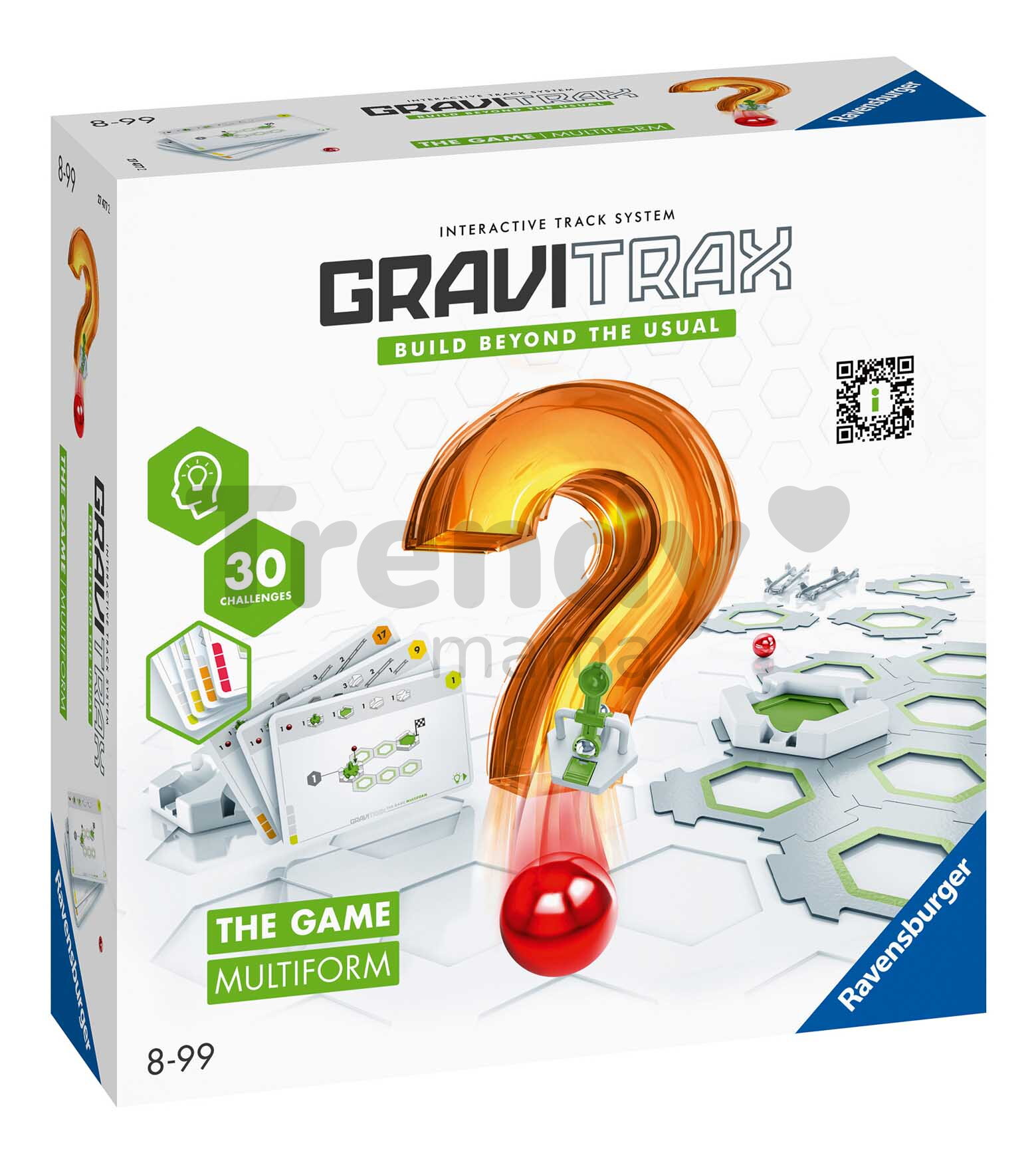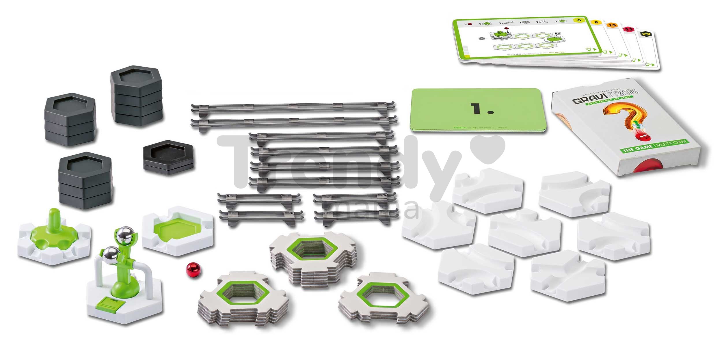 Kuličková dráha Formy Multiform z kolekce The Game GraviTrax představuje novou řadu stavebnic, zaměřenou na stavbu originálních minidrah podle přesného zadání. Balení obsahuje stavební dílky pro vybudování dráhy a 30 kartiček s originálními výzvami, které musí dítě zvládnout, přičemž může do hry zapojit i své kamarády. Naplno tak využije při hře svoji představivost, logické myšlení a vnímání prostoru pro zvládnutí každého úkolu. Celá souprava obsahuje 85 doplňků se soutěžními kartičkami, stavebními dílky s kolejnicemi, lopatkou pro zvednutí míčku o pár úrovní výše a 1 kuličkou pro testování minidráhy.