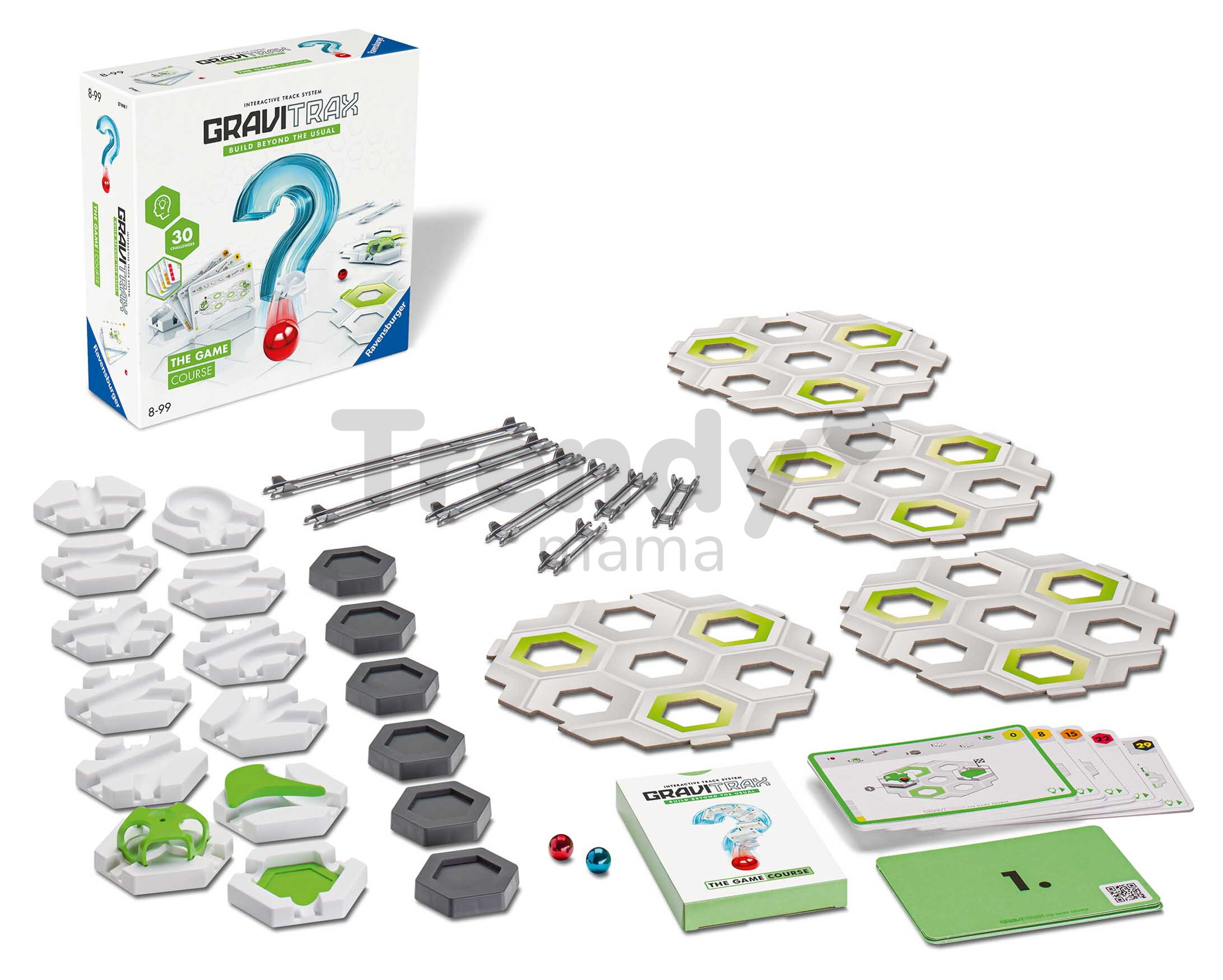 Kuličková dráha Kurz The Course z kolekce The Game GraviTrax představuje novou řadu stavebnic, zaměřenou na stavbu originálních minidrah podle přesného zadání. Balení obsahuje stavební dílky pro vybudování dráhy a 30 kartiček s originálními výzvami, které musí dítě zvládnout, přičemž může do hry zapojit i své kamarády. Naplno tak využije při hře svoji prostorovou představivost a logické myšlení pro zvládnutí každého úkolu. Celá souprava obsahuje 69 doplňků se soutěžními kartičkami, stavebními dílky s kolejnicemi, křižovatkami a 2 kuličkami pro testování minidráhy.