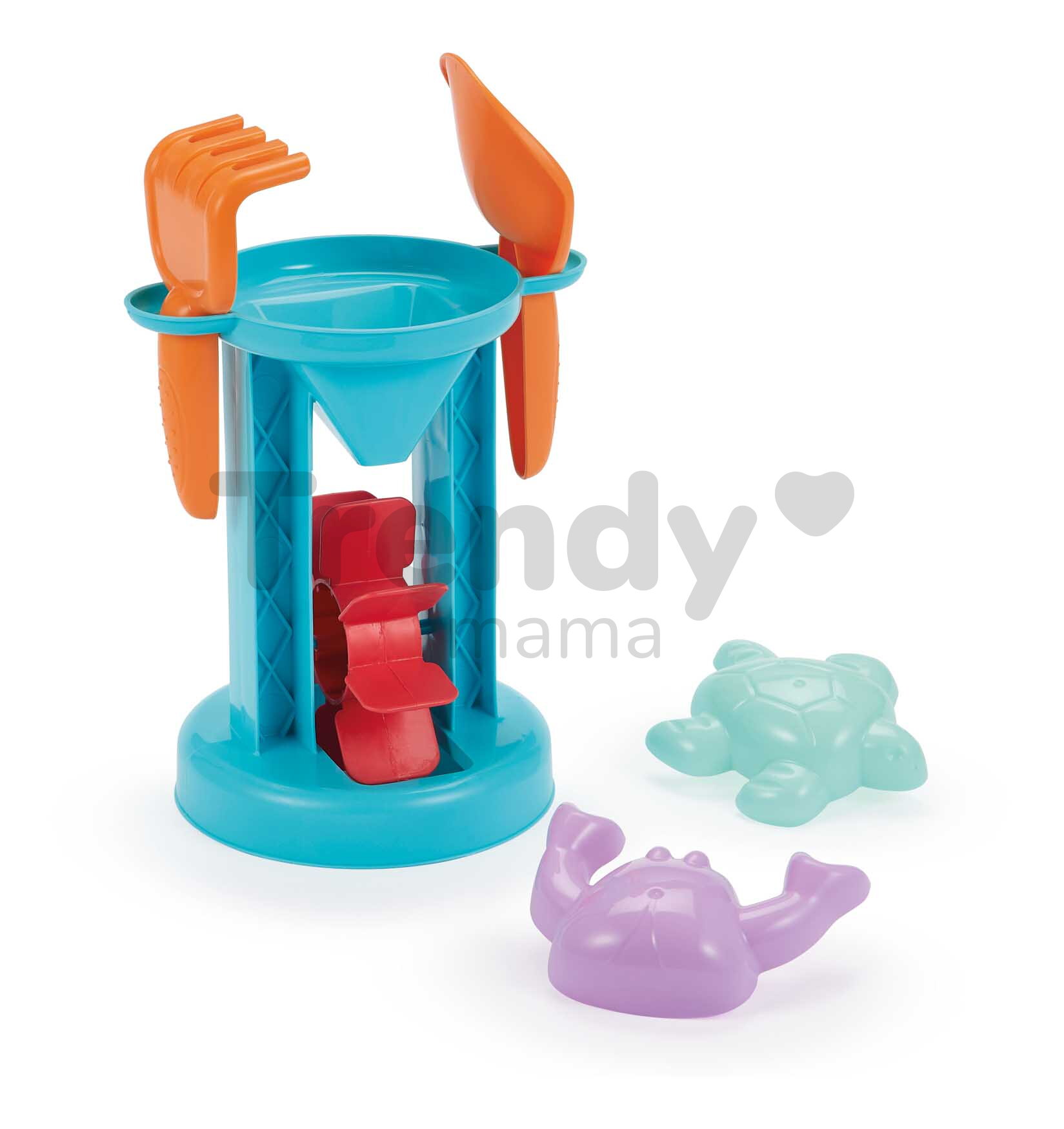 Mlýn s bábovičkami od francouzské značky Écoiffier představuje perfektní dárek pro chlapce a dívky již od 18 měsíců. Mlýn na vodu a písek obsahuje také lopatku, hrábě a bábovičky ve tvaru želvy a kraba, díky kterým si děti zahrají v písku na dlouhé hodiny. Praktický set do písku je vyroben z kvalitního a odolného plastového materiálu, lze jej snadno vzít na cesty a dovolené u moře. Hračky do písku pomáhají dětem rozvíjet fantazii a představivost, hravou formou si zlepšují jemnou motoriku.
