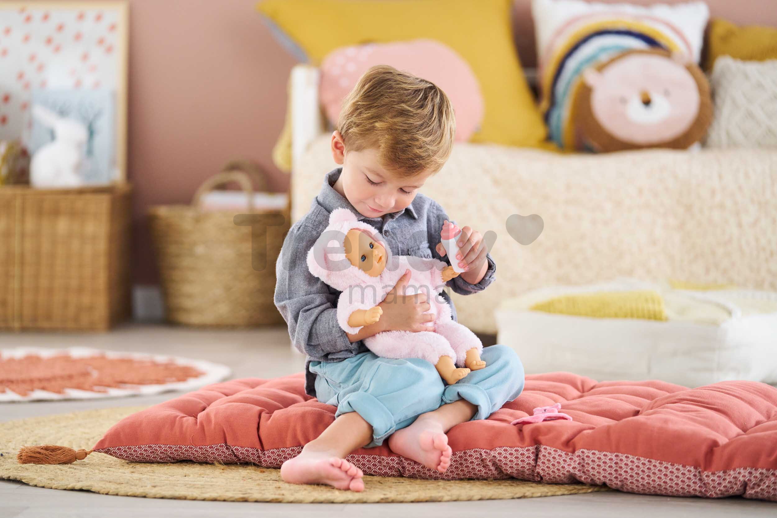 Panenka Loving Teddy Bear v roztomilém oblečení je dokonale přizpůsobena věku děťátka po všech stránkách. Prvotřídní materiály příjemné na dotek i pohlazení přinesou dětem ničím nerušenou hru, během které si děti procvičují jemnou motoriku, ale i komunikační dovednosti. Prostřednictvím hry s panenkou Bébé Calin se děti přibližují světu dospělých a poznávají své vlastní emoce, díky jedinečnému designu oblečení si zase rozvíjejí fantazii. Panenku Corolle perte ručně při maximálně 40 °C pouze s použitím jemného tekutého mýdla a sušte na vzduchu.