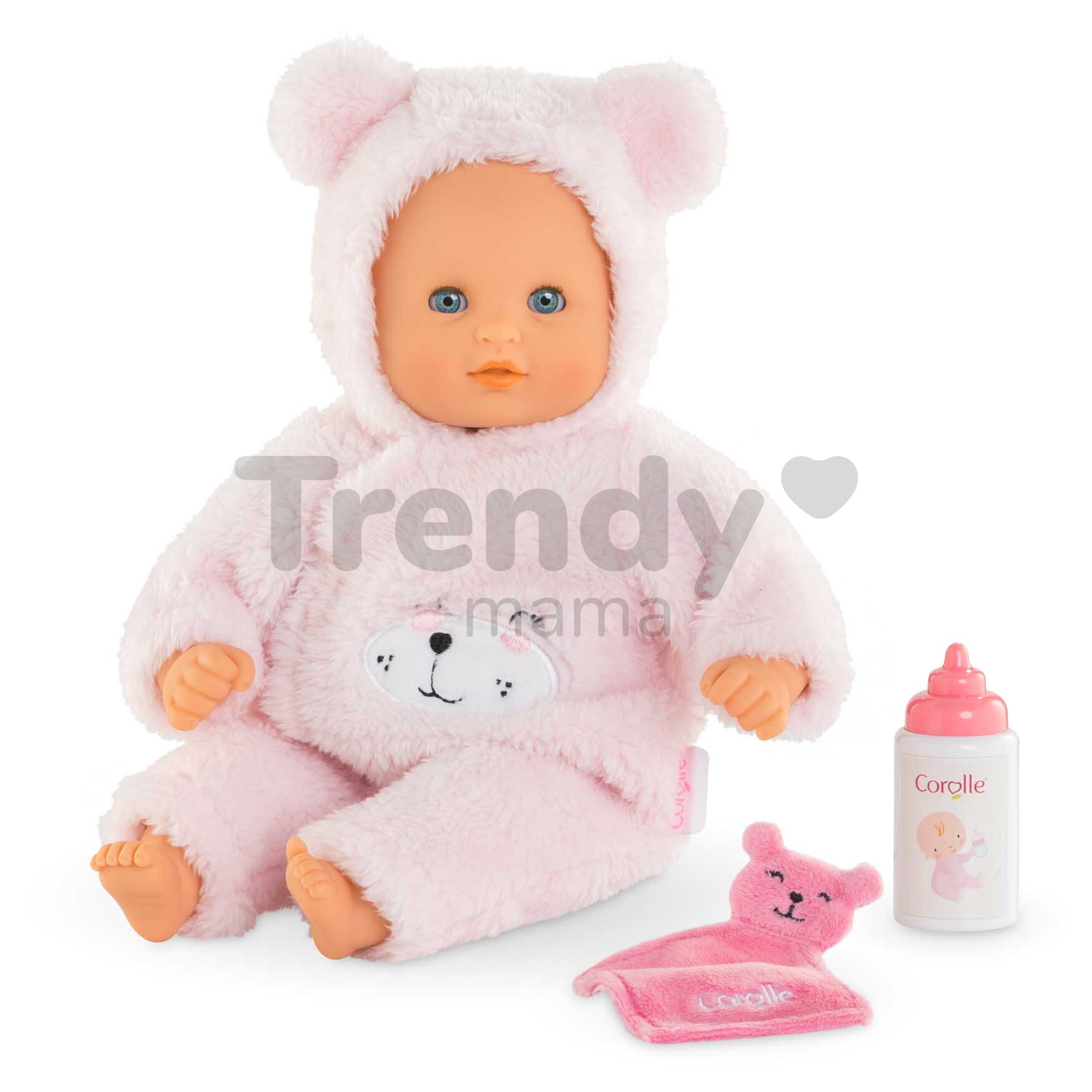 Panenka oblečená v měkoučkém pyžamku s čepičkou má pronikavé modré oči, které vypadají jako živé, takže hra s panenkou bude dětem připomínat péči o skutečné miminko. Každou hru s touto panenkou Corolle navíc umocní i mrkací oči, které se zavřou vždy, když děťátko uloží panenku do postýlky. Vaše děťátko si díky prvotřídním materiálům, perfektnímu provedení a laskavému výrazu vytvoří s touto panenkou pevné pouto, které přetrvá. O nádherné momenty během hry se postarají i 2 doplňky – láhev na mléko a hadřík-mazlíček pro panenku.
