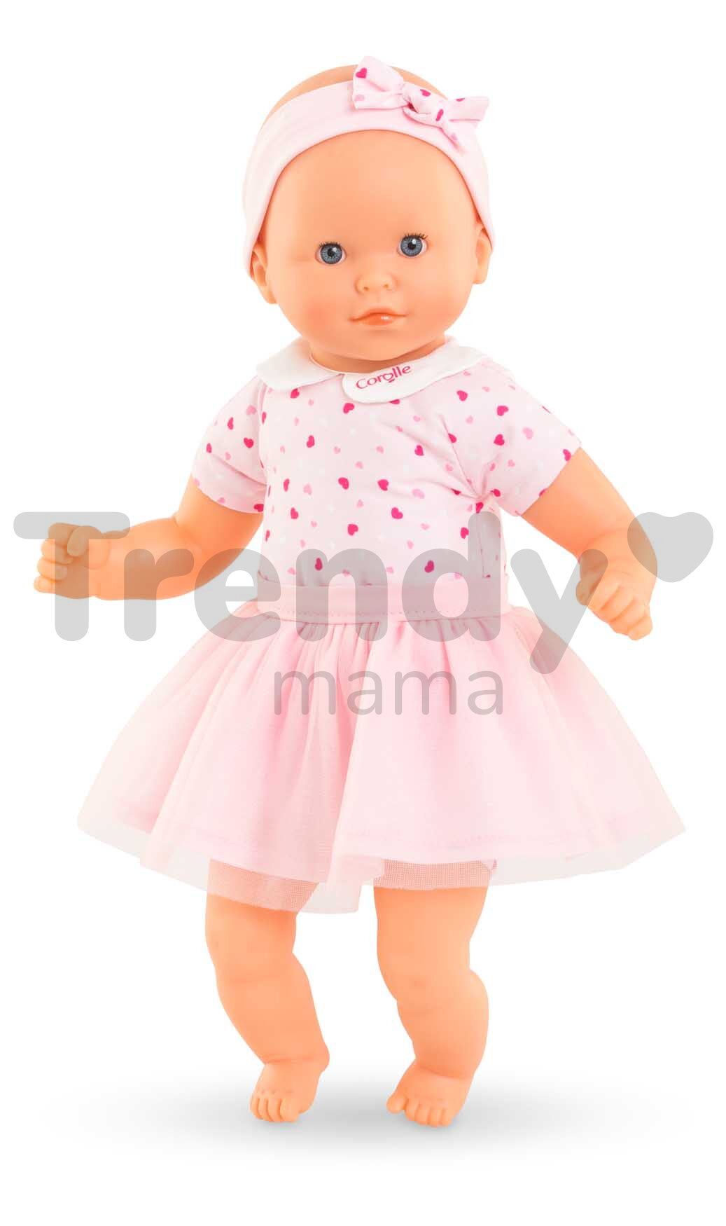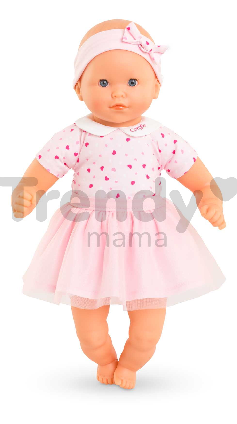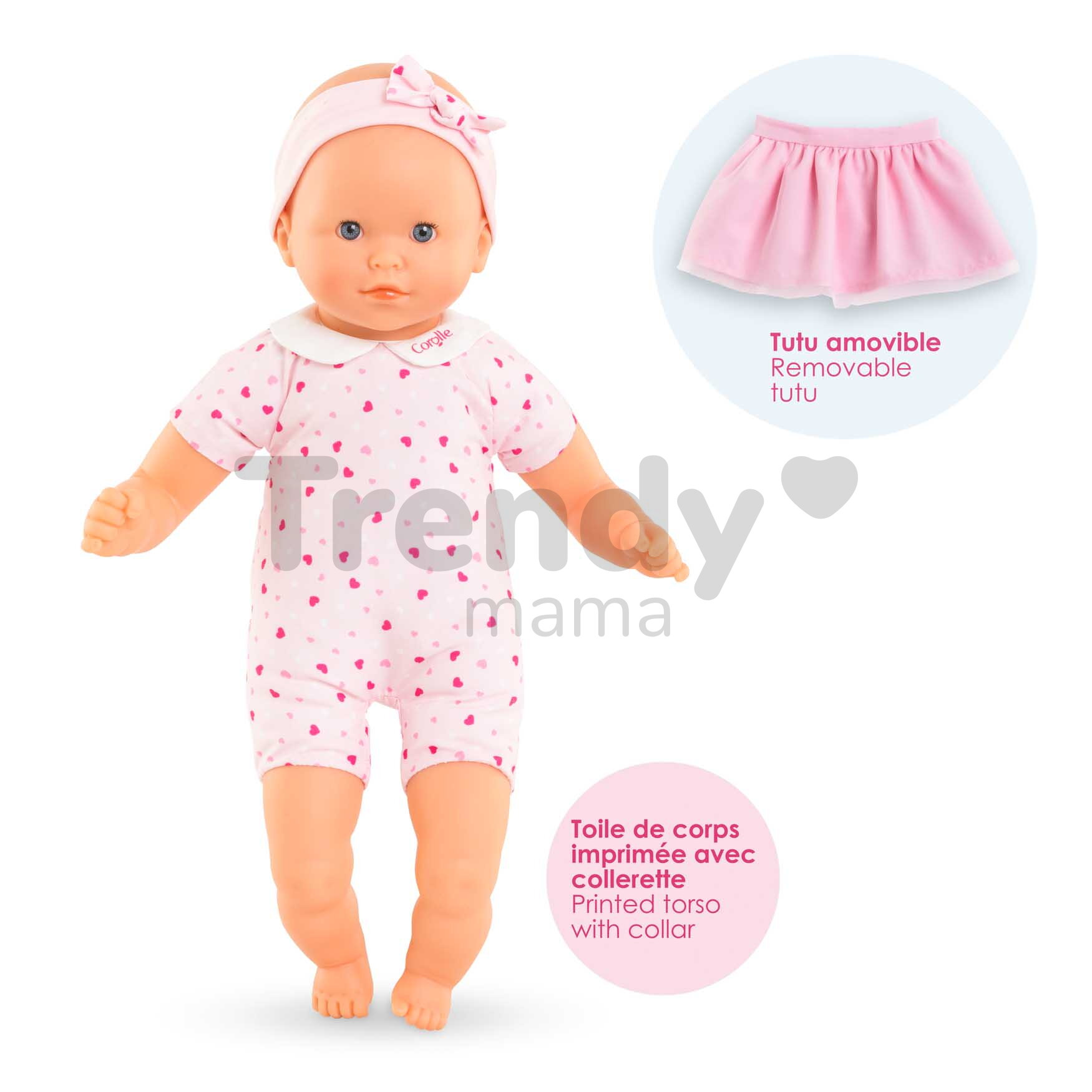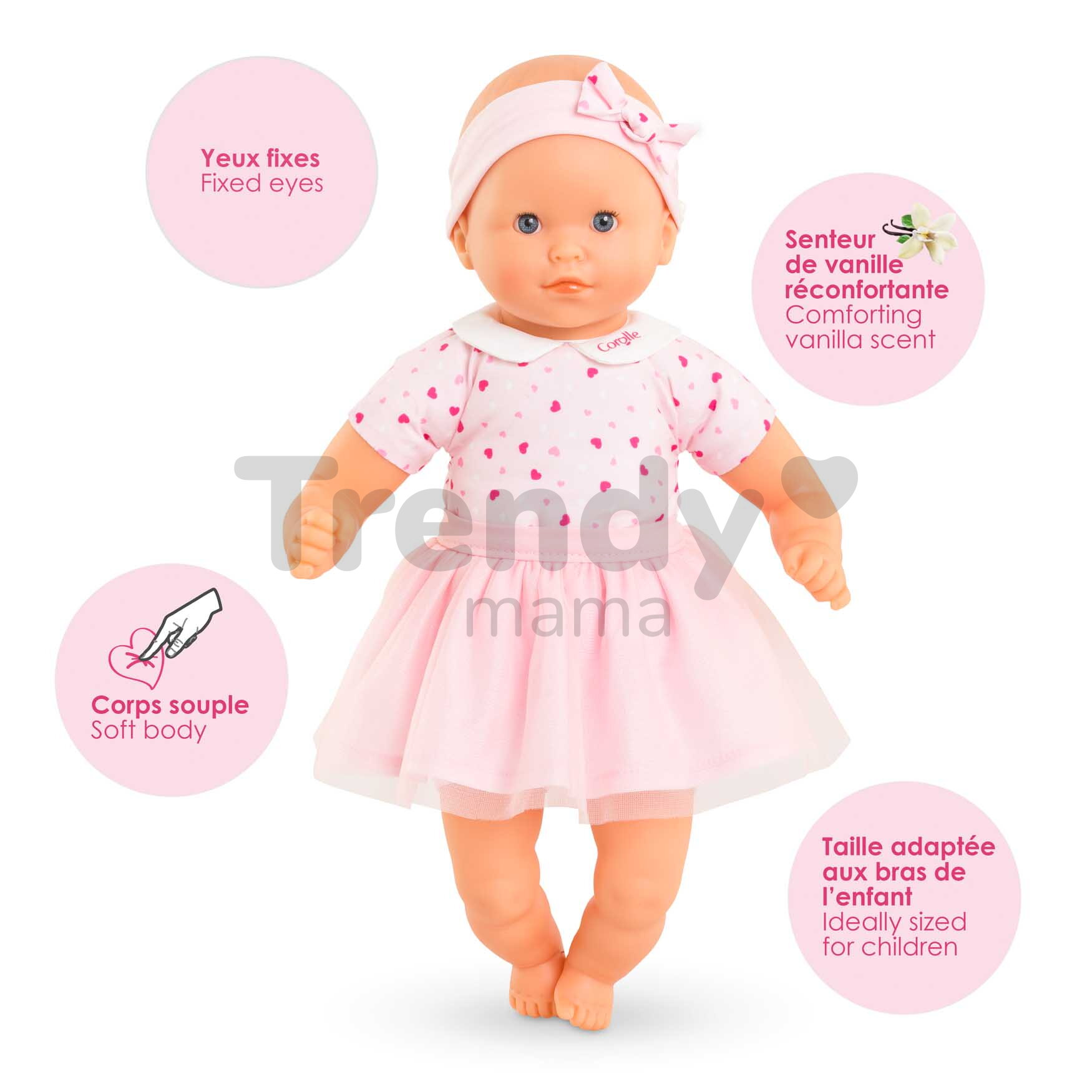Překrásná panenka Mon Adorable Petit Poupon Hearts z dílny francouzské značky Corolle je ta nejkrásnější panenka pod sluncem, která vypadá téměř jako skutečné miminko. Modrooká panenka pro děti od 12 měsíců je oblečená v krásných růžových dupačkách se srdíčky a tutu sukýnce. Rozkošná panenka Corolle je připravena k péči, kterou jí vaše děťátko poskytne. Tělíčko panenky je příjemné na dotek i přitulení, je měkoučké a voní jako vanilka.