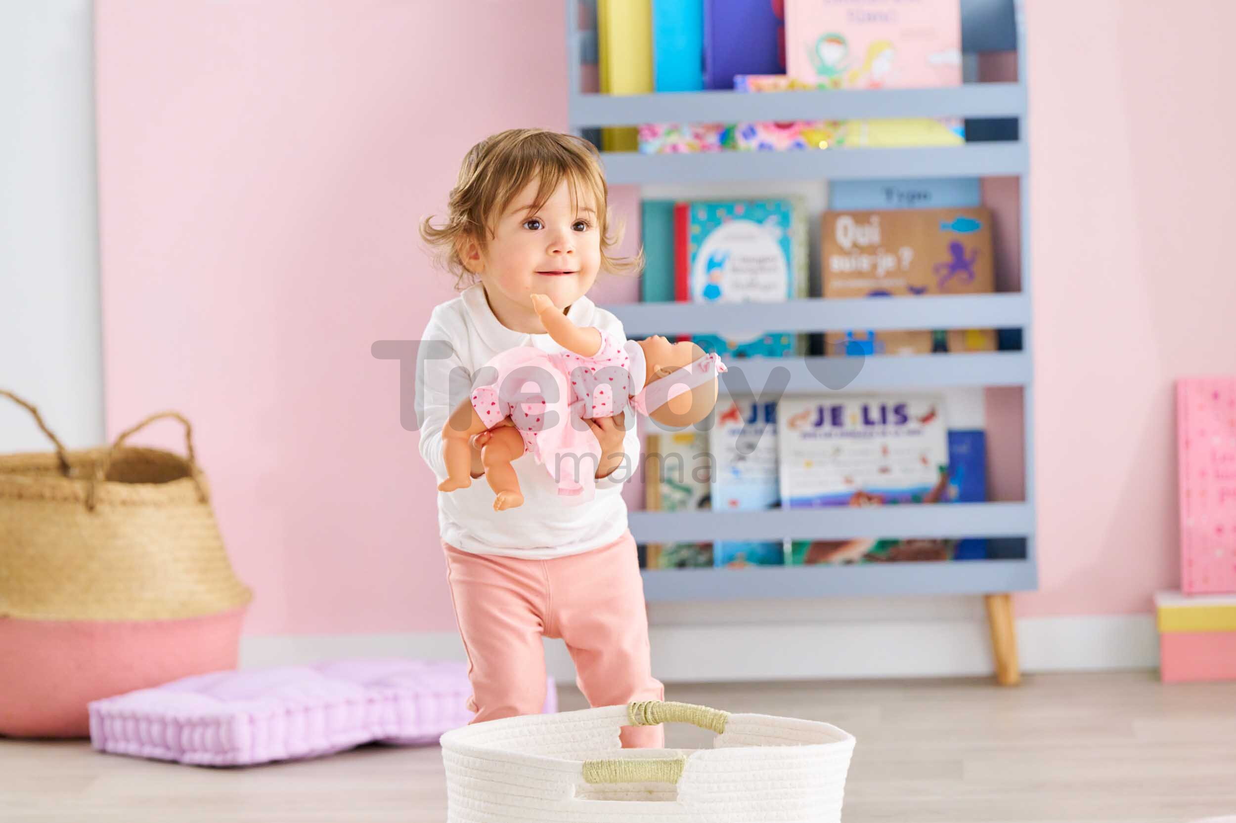 Panenka Corolle v růžových dupačkách a sukýnce je dokonale přizpůsobena věku děťátka po všech stránkách. Prvotřídní materiály příjemné na dotek i pohlazení přinesou dětem ničím nerušenou hru, během které si děti procvičují jemnou motoriku, ale i komunikační dovednosti. Prostřednictvím hry s panenkou Bébé Calin se děti přibližují světu dospělých a poznávají své vlastní emoce, díky jedinečnému designu oblečení si zase rozvíjejí fantazii. Panenku Corolle perte ručně maximálně při 40 °C a pouze s použitím jemného tekutého mýdla a sušte na vzduchu.