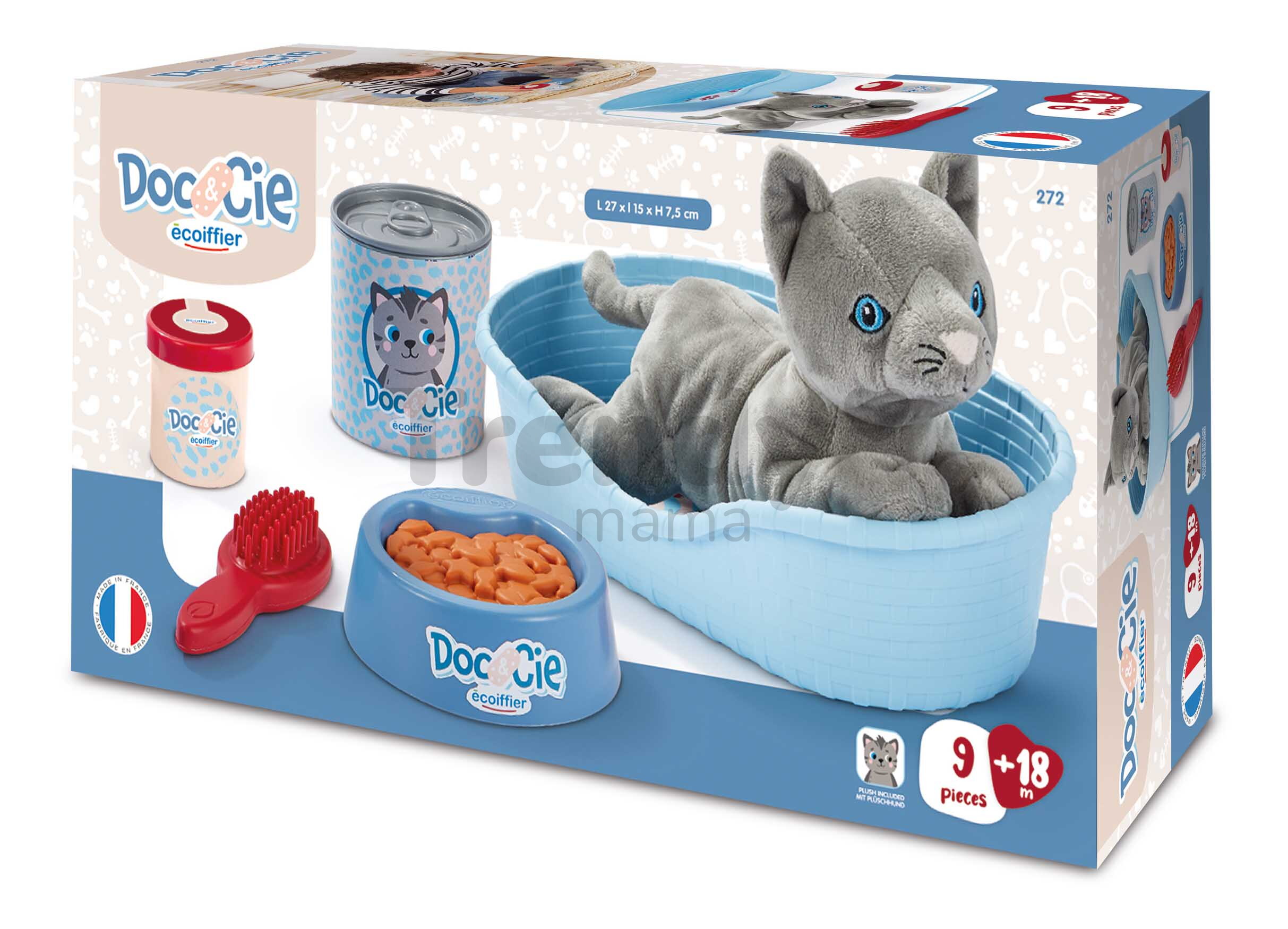 Nádherné hračky pro děti od francouzského výrobce Écoiffier. Pelíšek s plyšovou kočičkou a sada doplňků pro péči o zvířátko potěší každé dítě již od 18 měsíců.