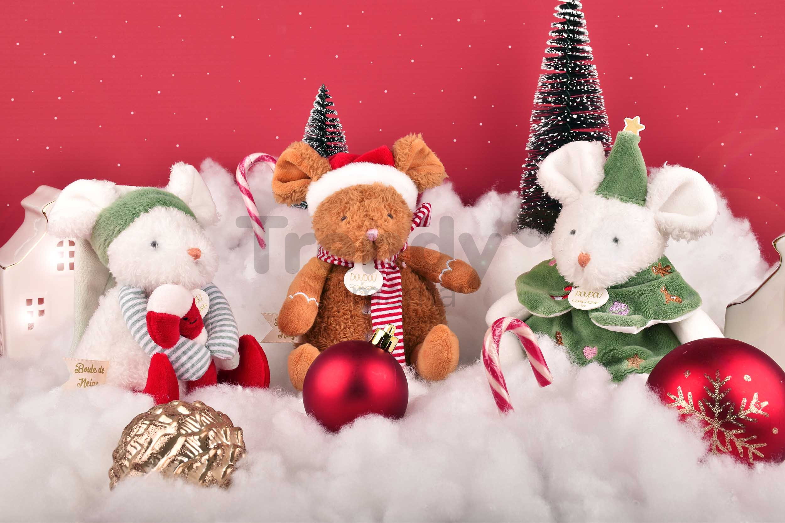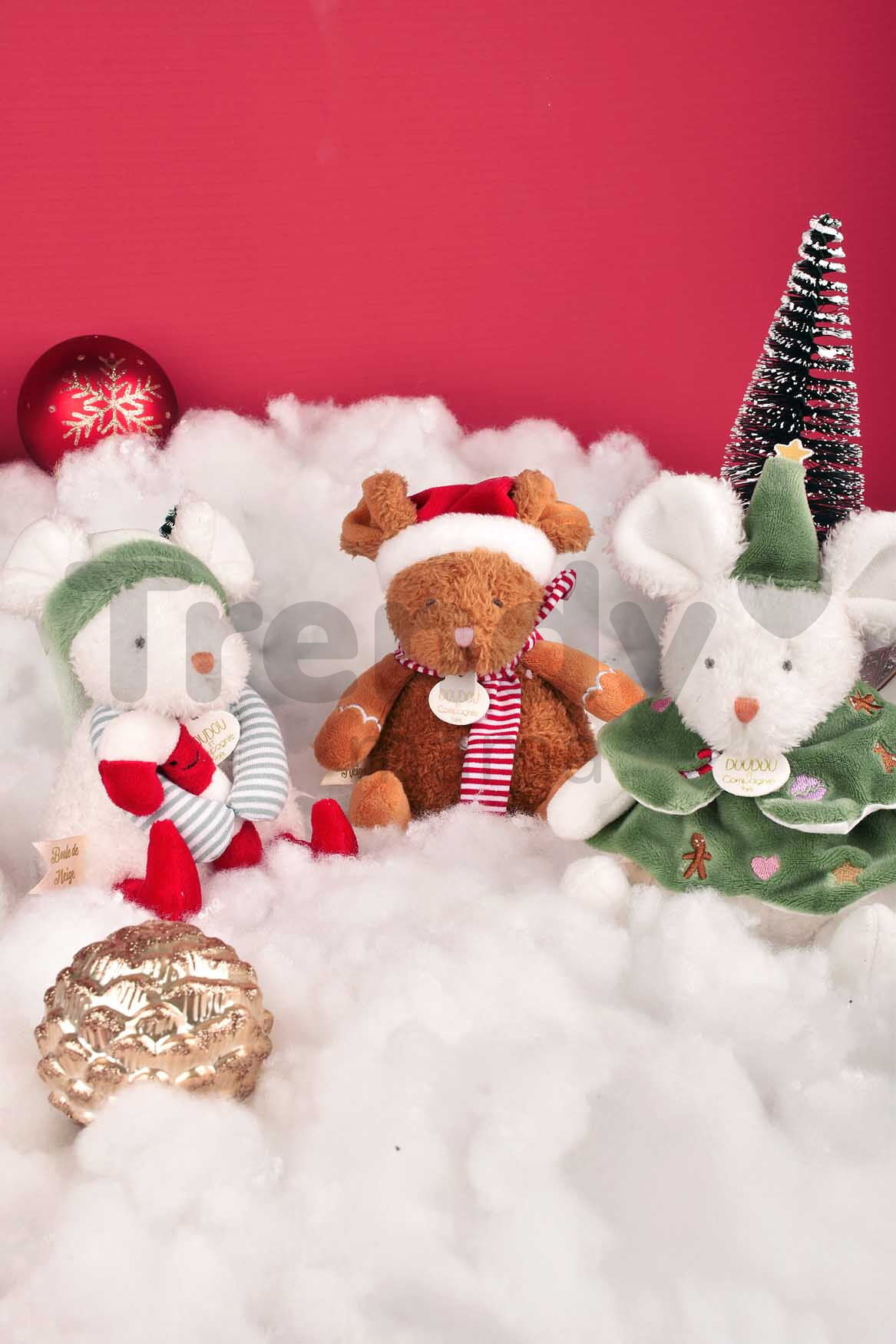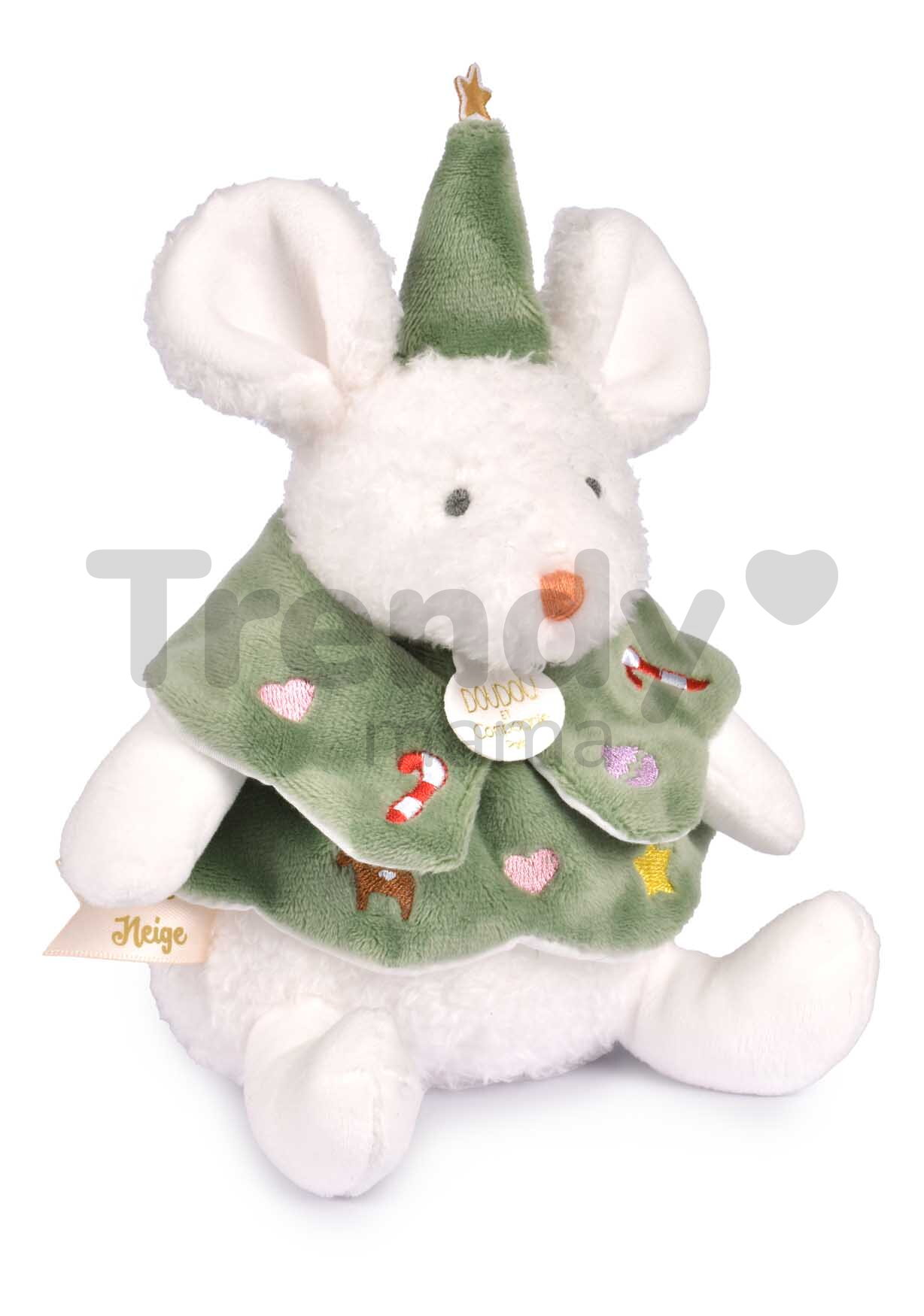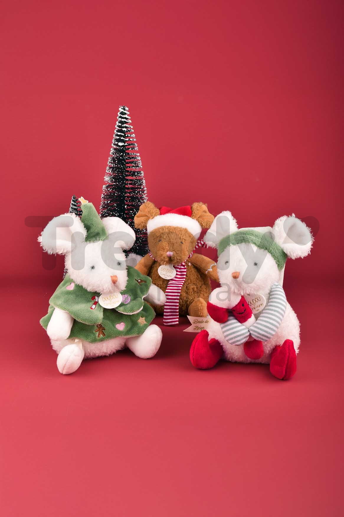 Plyšová myška s vánočním motivem oblečená v krásném vánočním oblečení splňuje nejpřísnější bezpečnostní kritéria a je testována nezávislými, schválenými laboratořemi. Plyšová myška Doudou et Compagnie je vytvořena ve třech barevných kombinacích. Uvedená cena je za jednu plyšovou hračku.