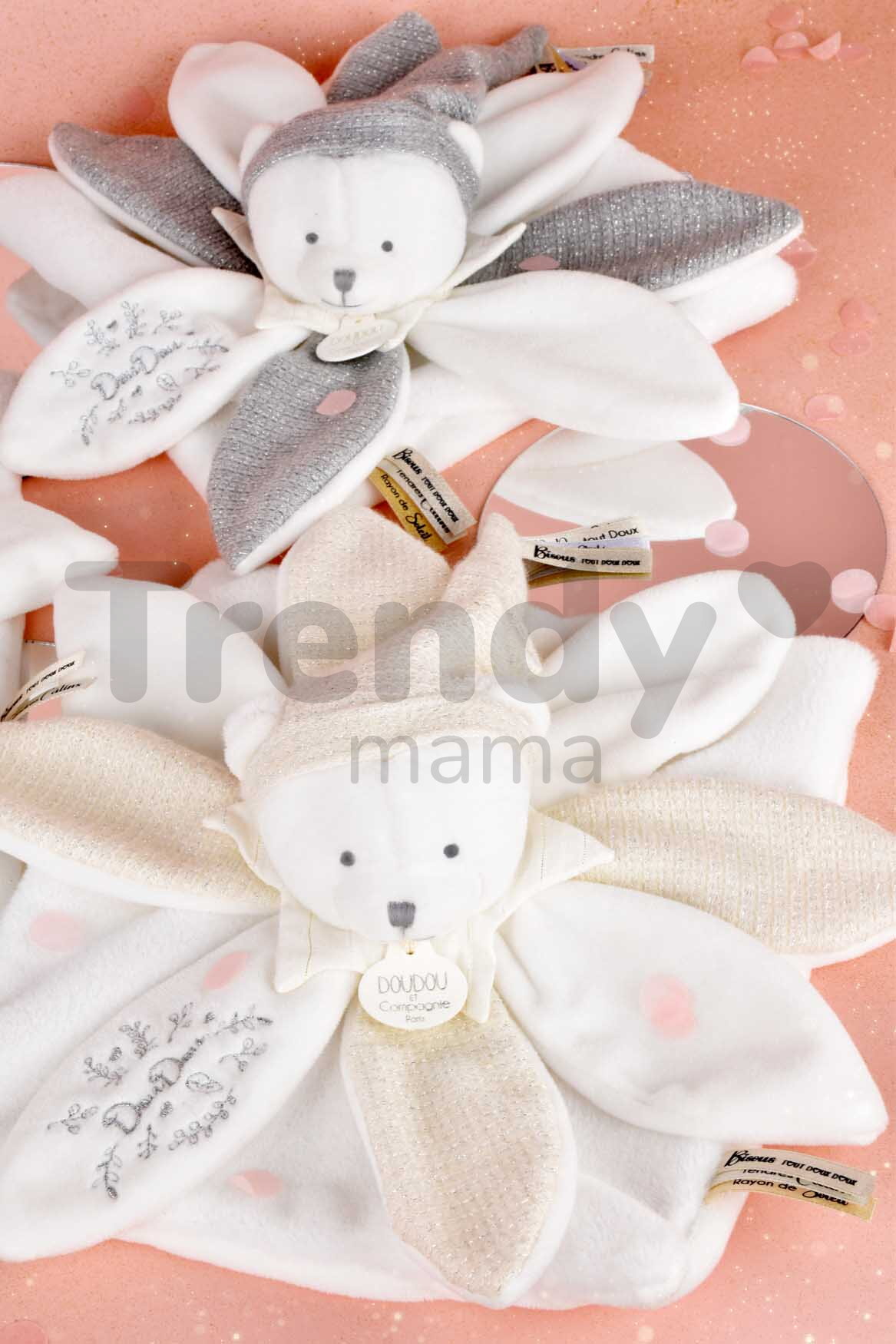 Hledáte originální hračku pro miminko? Plyšový medvídek k mazlení Doudou et Compagnie má tělíčko jako lupeny květin a je v dárkovém balení.