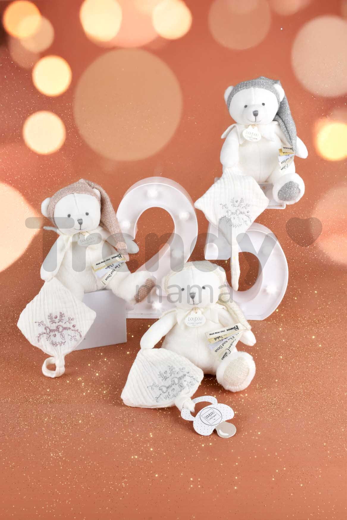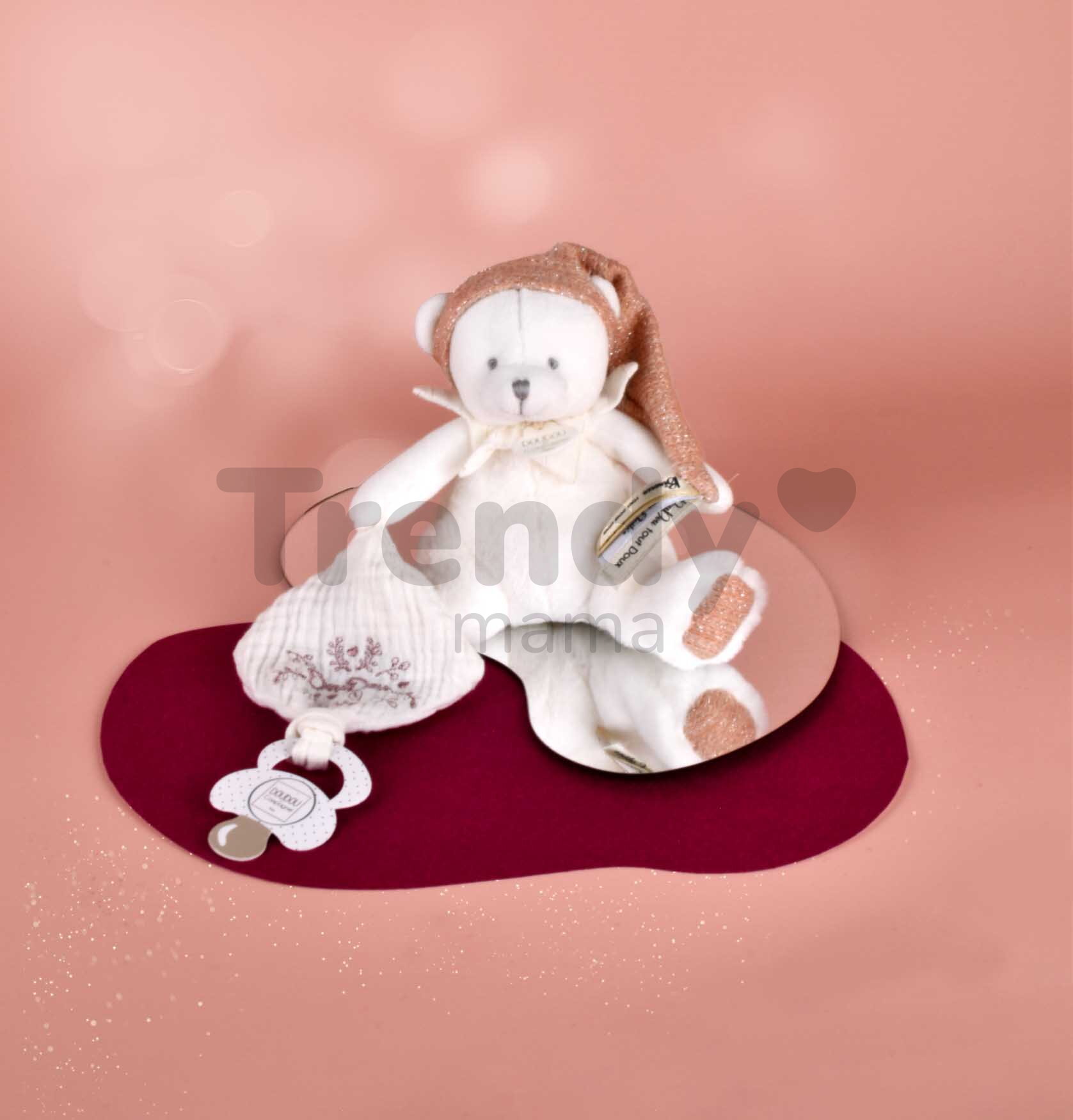 Jedinečný plyšový medvídek Doudou et Compagnie je ochráncem dudlíku každého miminka. Plyšový medvídek má klip na dudlík a je jednoduše rozkošný.
