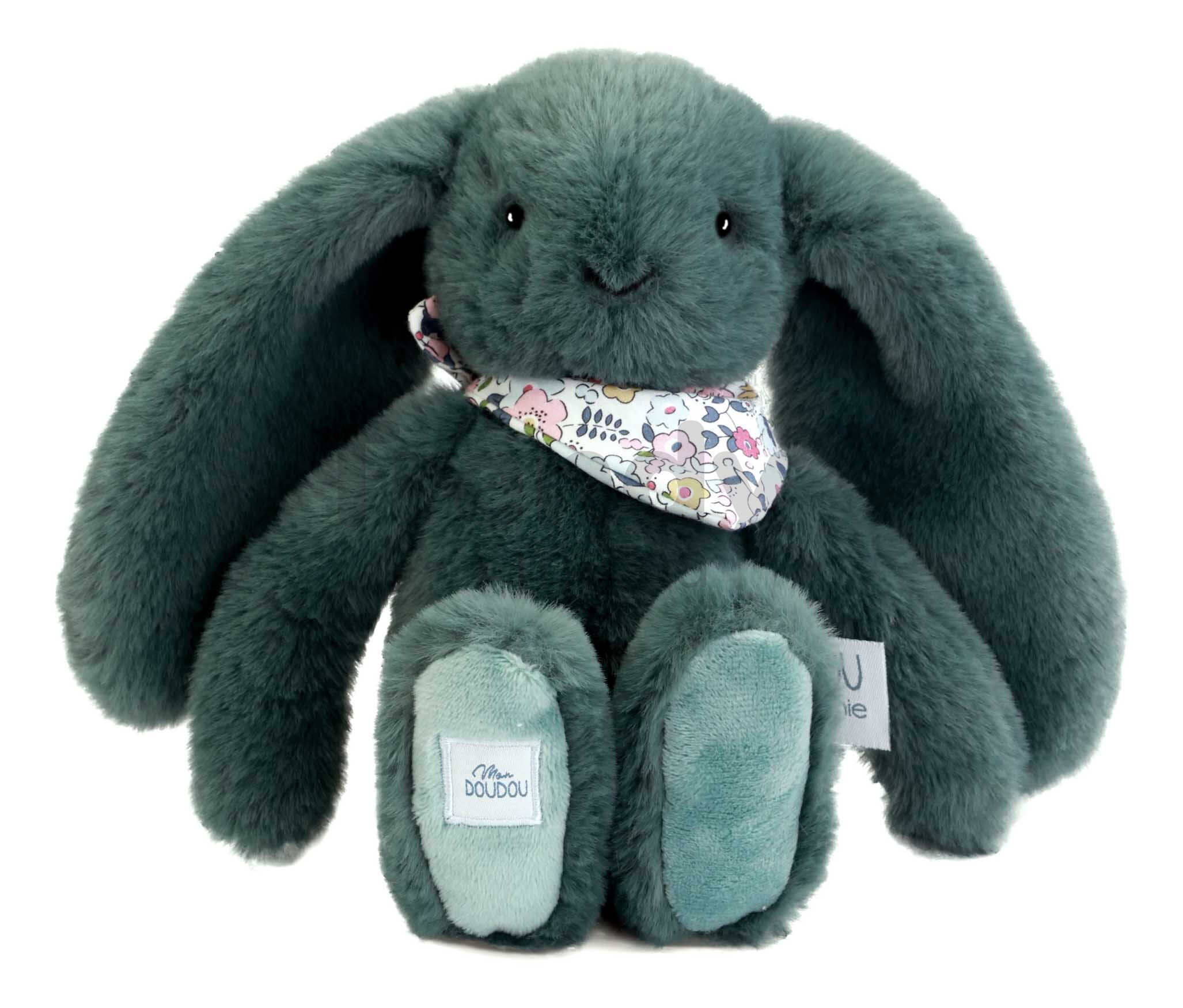 Plyšový zajíček Fleurette the Bunny Eucalyptus Doudou et Compagnie je velký 25 cm, takže je jako stvořený k mazlení a tulení. Zajíček má dlouhá ouška, hebké, měkké tělíčko, ke kterému se miminko přitulí a v přítomnosti této plyšové hračky najde komfort a útočiště. Zelený plyšový zajíček pocházející z dílny francouzské značky Doudou et Compagnie dokáže stát zpříma a představuje elegantní dárek k narození miminka či k prvním narozeninám.