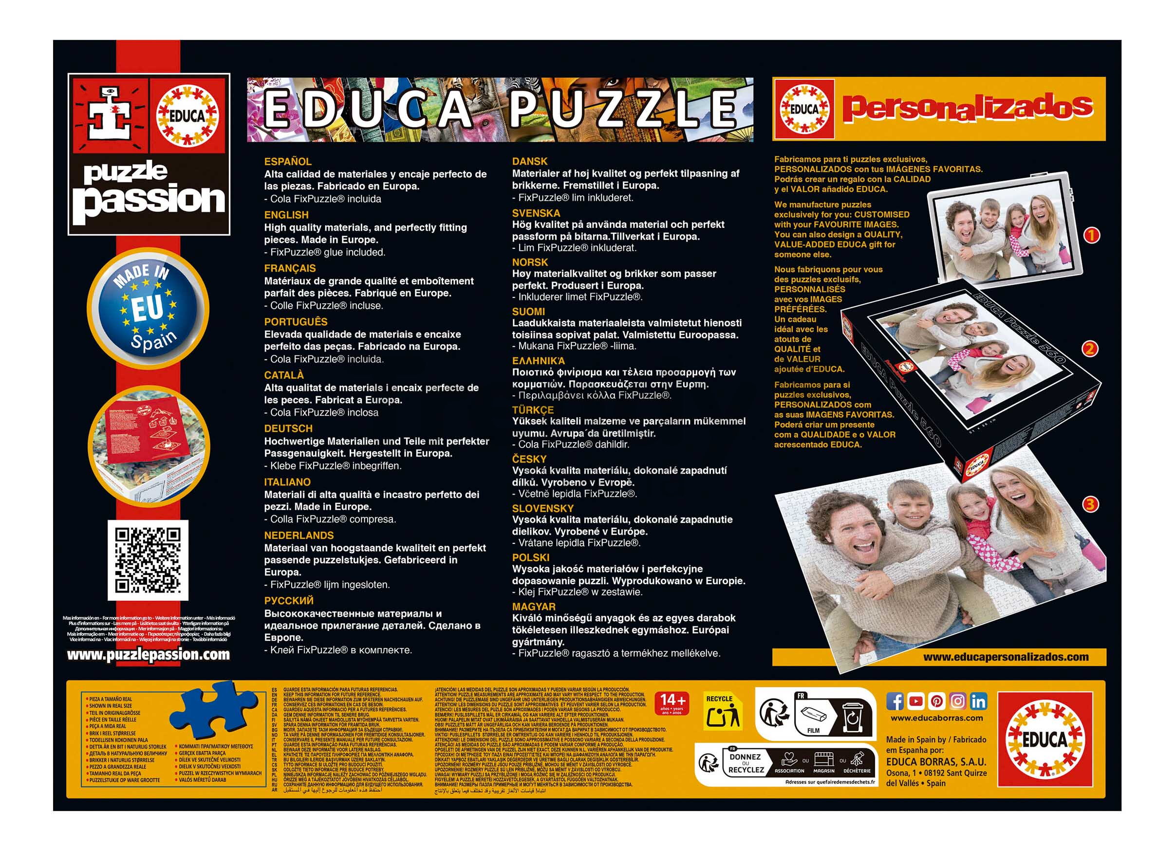 Educa se specializuje zejména na výrobu puzzle a vzdělávacích her – nabízí množství krásných puzzle pro různé věkové kategorie, které rozhodně nemohou chybět ve vaší kolekci. S puzzle Educa se už víc nemusíte bát ztracených dílků. Až do 16 kusů dílků na vyžádání přes formulář zašle výrobce Educa bezplatně pro každé puzzle, které mají příslušné označení na krabici.