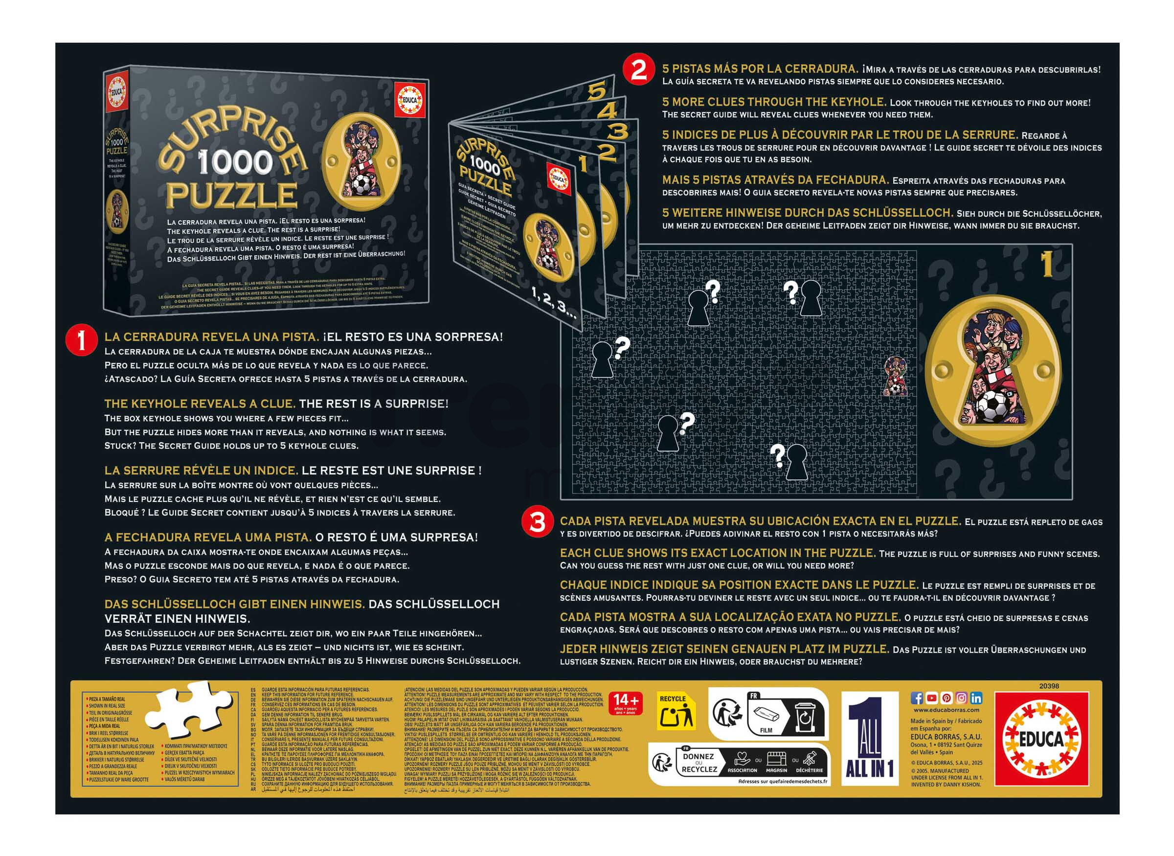 Puzzle s překvapením 1000 Shoot! představují originální dárek pro každého pokročilého milovníky puzzle a děti od 14 let. Balení těchto puzzle obsahuje 1000 dílků, přičemž až do poskládání celého obrázku nevíte, jak vypadá kompletní obraz. Puzzle z kolekce Surprise obsahují 5 obrázkových pomůcek, které vám pomohou se skládáním formou nahlédnutí na obrázek jako klíčovou dírkou, čímž je skládání ještě poutavější a záhadnější. Součástí balení je také Fix lepidlo, díky kterému puzzle slepíte jako obrázek.