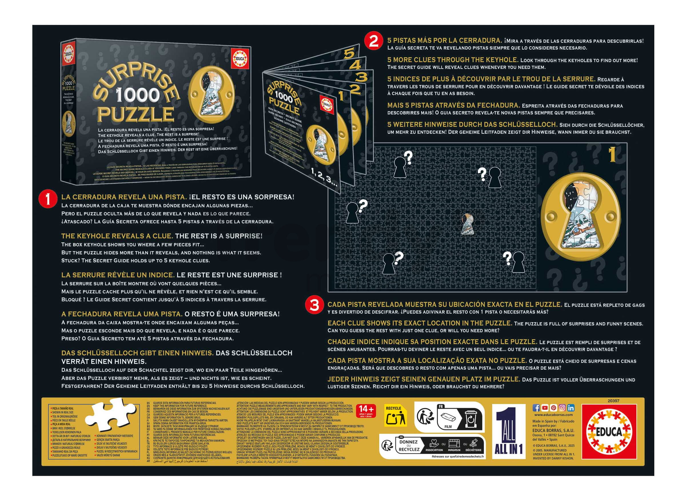 Puzzle s překvapením Antique XMAS Surprise představují perfektní dárek pro každého pokročilého nadšence puzzle a děti od 14 let. Balení těchto puzzle obsahuje 1000 dílků, přičemž až do poskládání celého obrázku nevíte, jak vypadá kompletní obraz. Puzzle z kolekce Surprise obsahují 5 obrázkových pomůcek, které vám pomohou se skládáním formou nahlédnutí na obrázek jako klíčovou dírkou, čímž je skládání ještě poutavější a záhadnější. Součástí balení je také Fix lepidlo, díky kterému puzzle slepíte jako obrázek.