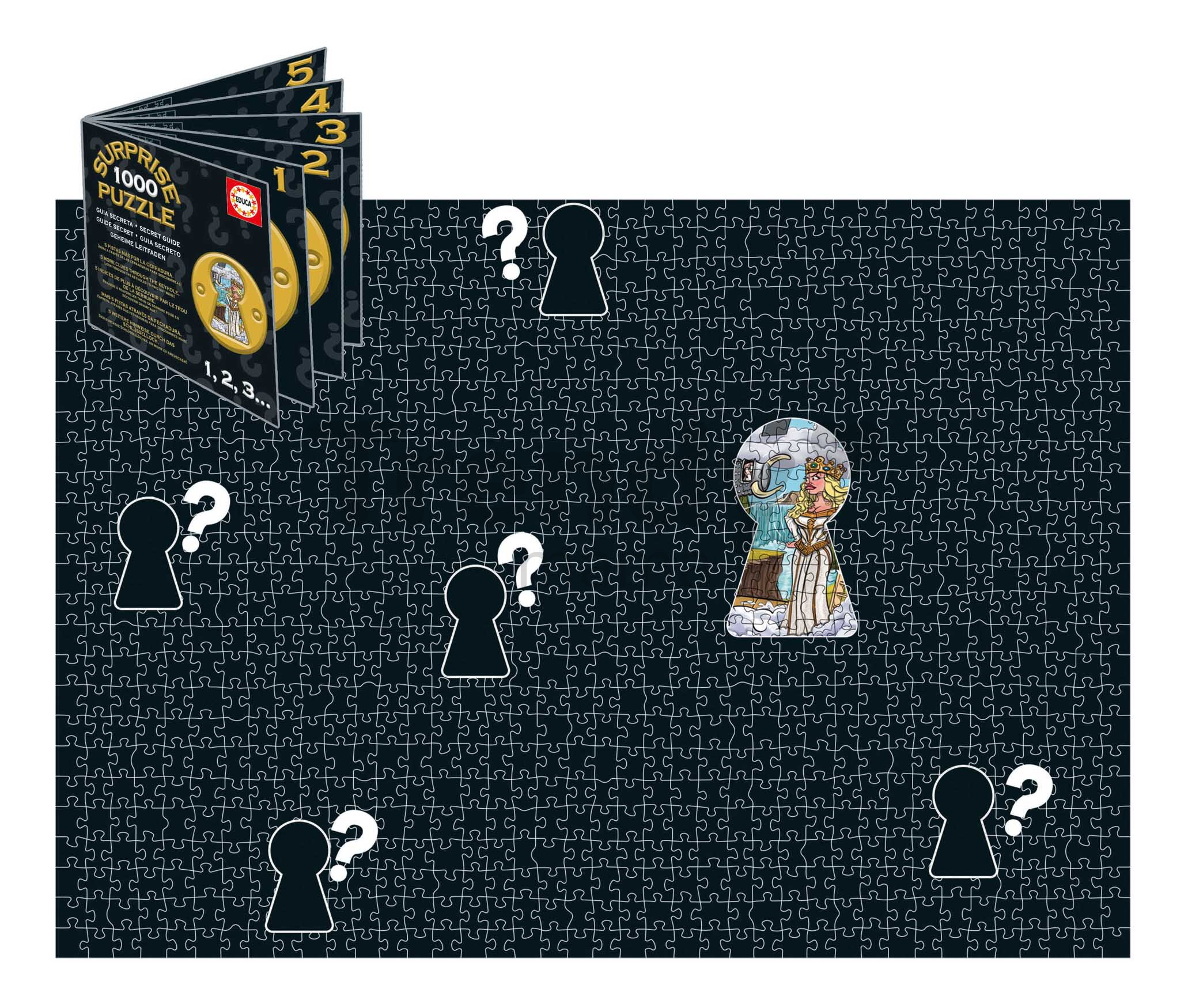 Puzzle s překvapením Knights Round Table Surprise představují vynikající dárek pro každého pokročilého nadšence puzzle a děti od 14 let. Balení těchto puzzle obsahuje 1000 dílků, přičemž až do poskládání celého obrázku nevíte, jak vypadá kompletní obraz. Puzzle z kolekce Surprise obsahují 5 obrázkových pomůcek, které vám pomohou se skládáním formou nahlédnutí na obrázek jako klíčovou dírkou, čímž je skládání ještě poutavější a záhadnější. Součástí balení je také Fix lepidlo, díky kterému puzzle slepíte jako obrázek.