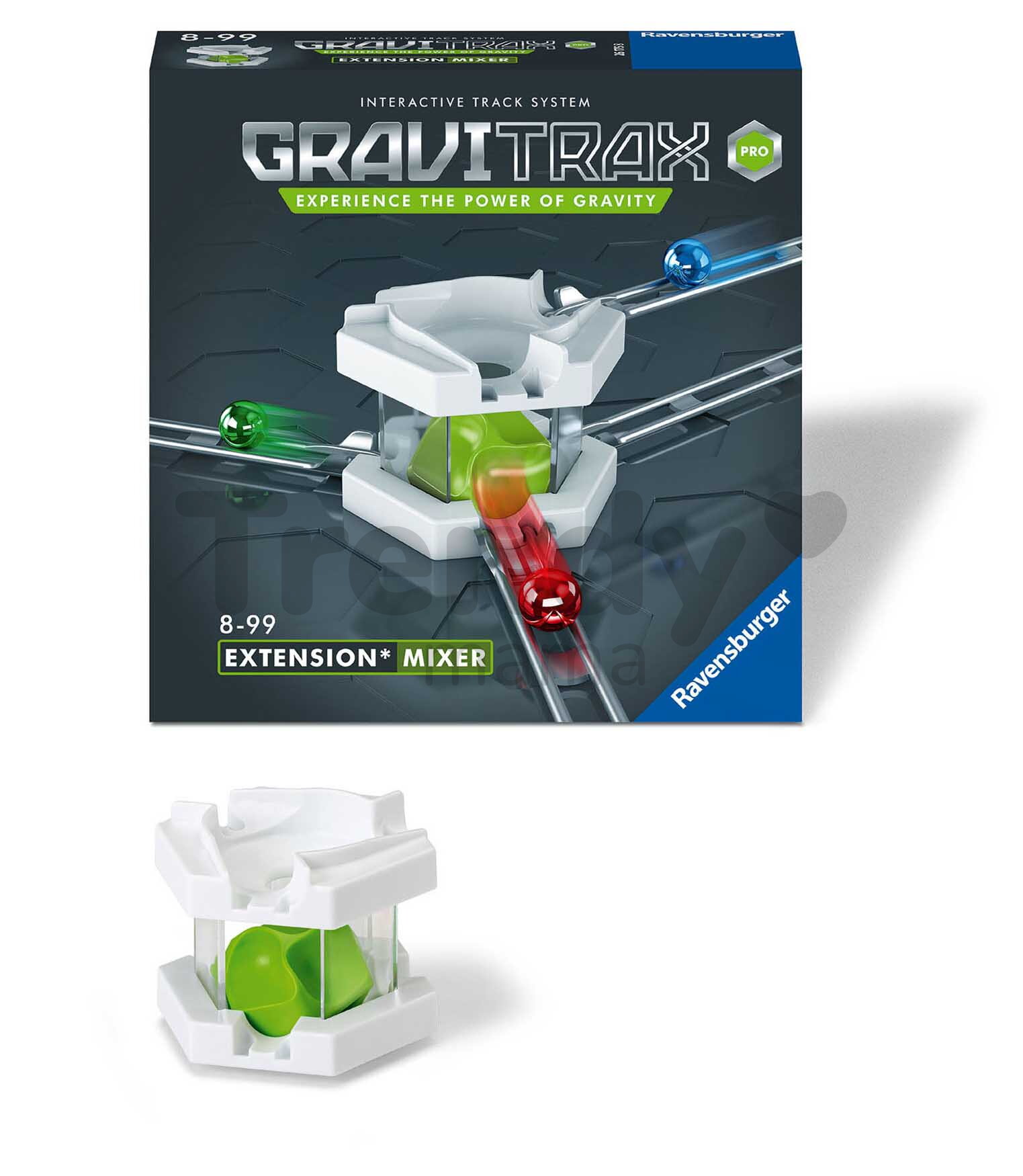 Rozšíření pro kuličkové dráhy Mixer PRO představuje kompatibilní doplněk k základním startovacím soupravám kuličkových drah GraviTrax a GraviTrax PRO. Stavební element Mixer má 2 patra – z vrchní úrovně se kuličky propadnou o patro níže a mohou se pohybovat 3 různými směry. Rozšíření Mixer PRO je vyrobeno z prvotřídního plastu a představuje originální dárek pro dospělé a děti od 8 let. Součástí balení je příručka a jednotlivé stavební dílky pro sestavení doplňku.