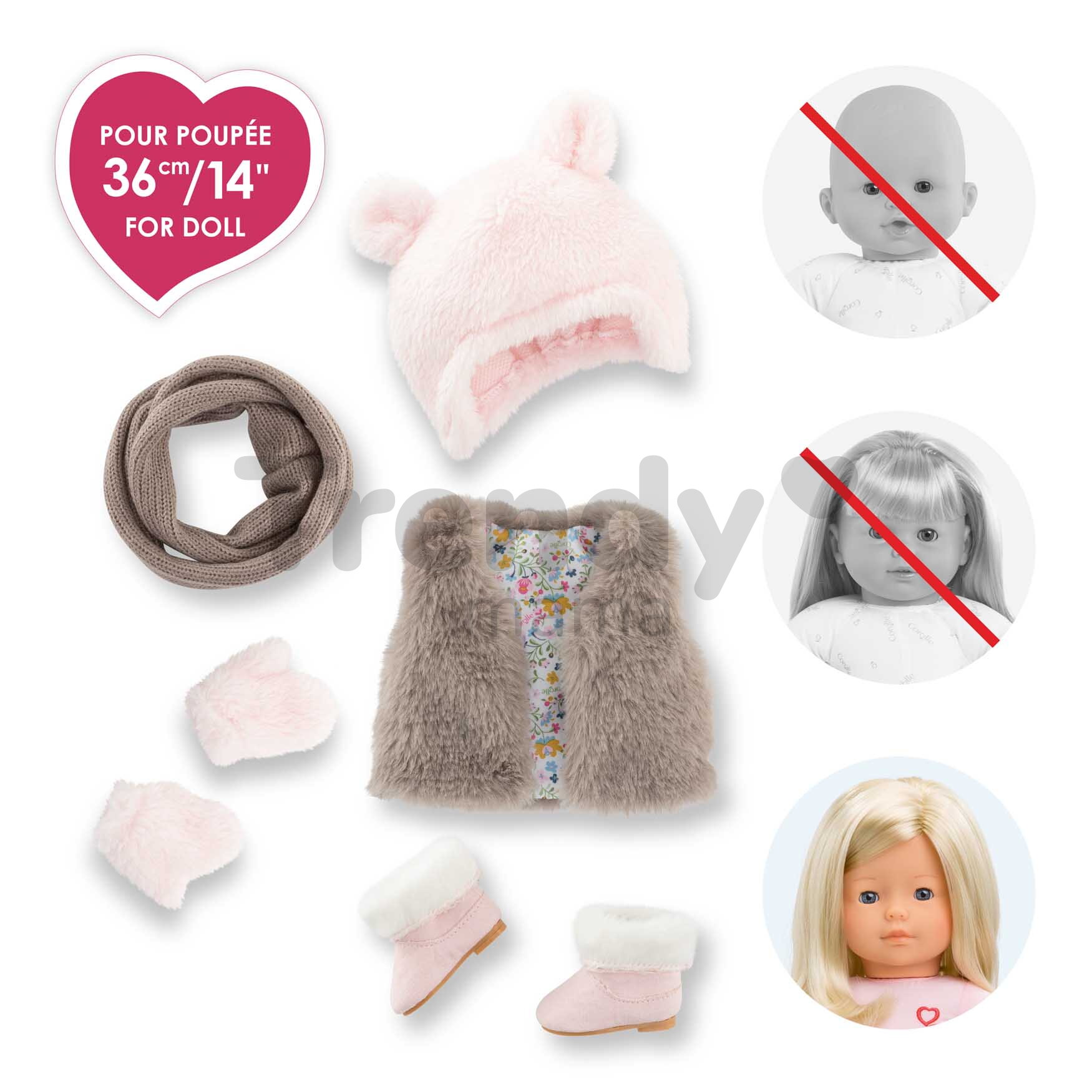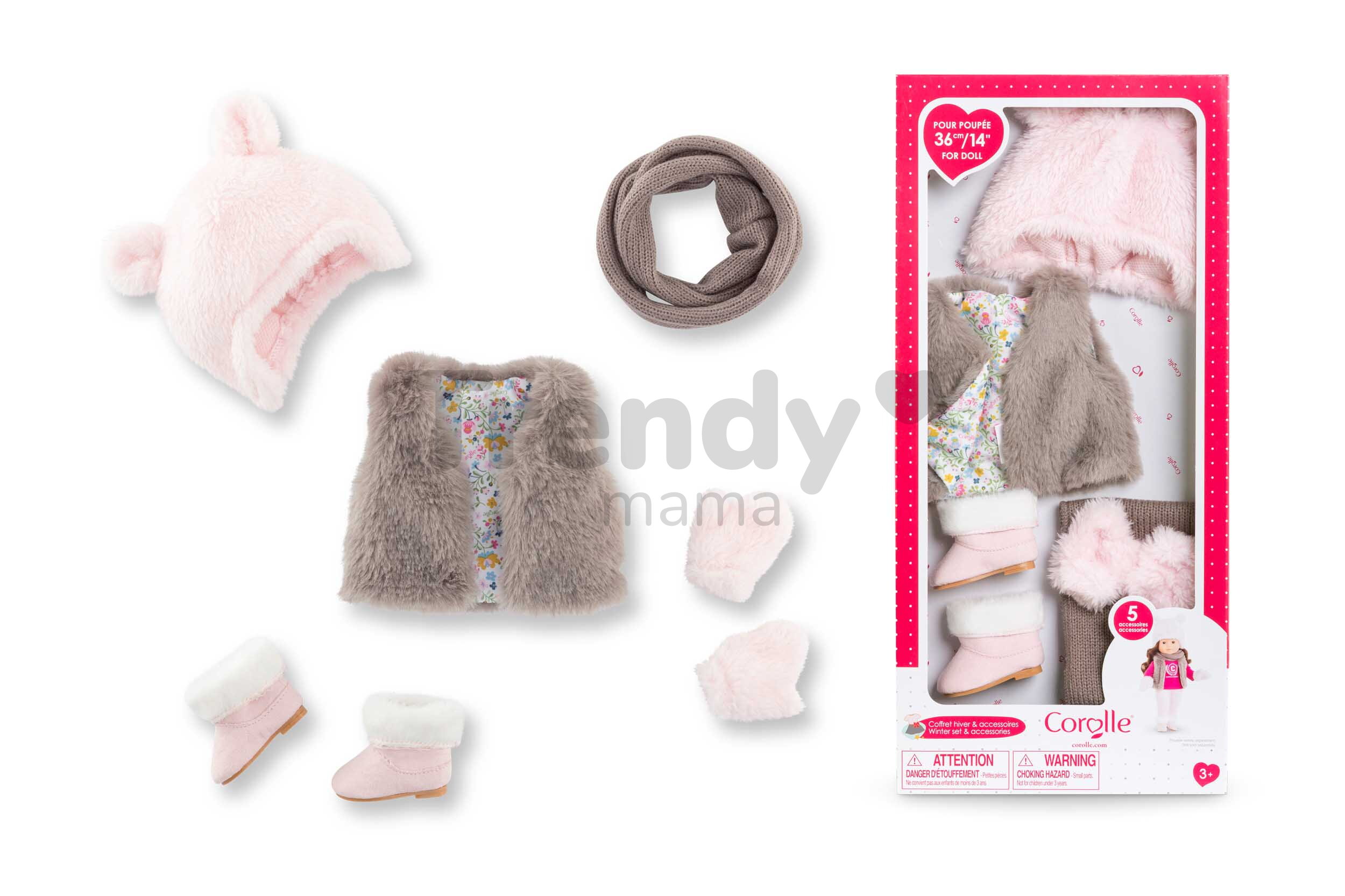 Zimní kolekce oblečení pro panenku Ma Corolle je jednoduše úchvatná. Sada oblečení na zimu pro panenku Winter Set and Accessories Ma Corolle je jako stvořená pro každou milovnici módy a zejména její milovanou panenku. Nádherný outfit na zimu pro panenku Ma Corolle o velikosti 36 cm je důkladně propracovaný do toho nejmenšího detailu. Tento stylový outfit obsahuje 5 módních kousků - huňatou vestu, čepici s oušky, šálu, rukavice a kozačky.