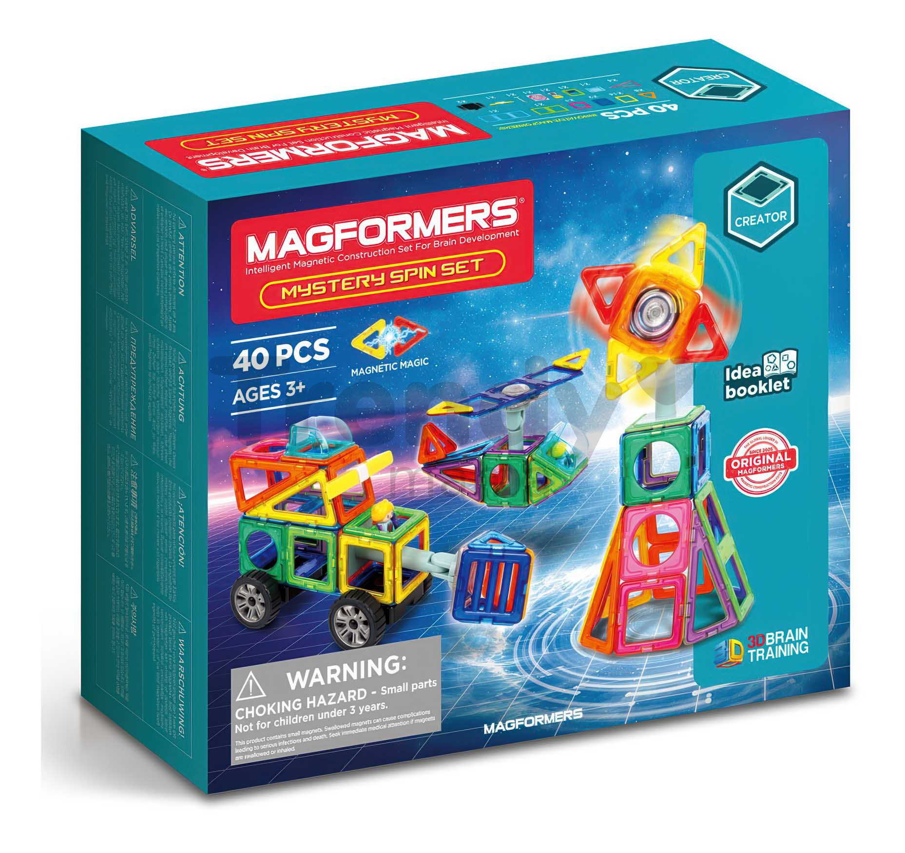 Magnetická stavebnice Mystery Spin Set Magformers z řady Creator představuje pokročilou stavebnici pro chlapce a dívky od 3 let. Bohatá 40dílná stavebnice je vybavena dílky různých tvarů se silnými vnitřními magnety, které se navzájem přitahují a rychle se spojují. Děti potěší i rotující dílek, díky kterému mohou část stavebnice roztočit, 1 figurka s dílkem ve tvaru sedadla a kola, takže dokážou vytvořit originální vozidla dle vlastní představivosti. S prvotřídními dílky děti vytvářejí 2D a 3D konstrukce, naplno se ponoří do světa fantazie a představivosti. Při kreativním tvoření si zlepšují jemnou motoriku, logické myšlení a rozvíjí prostorové vidění. Hravou formou se zároveň učí rozeznávat barvy a učí se základy geometrie.