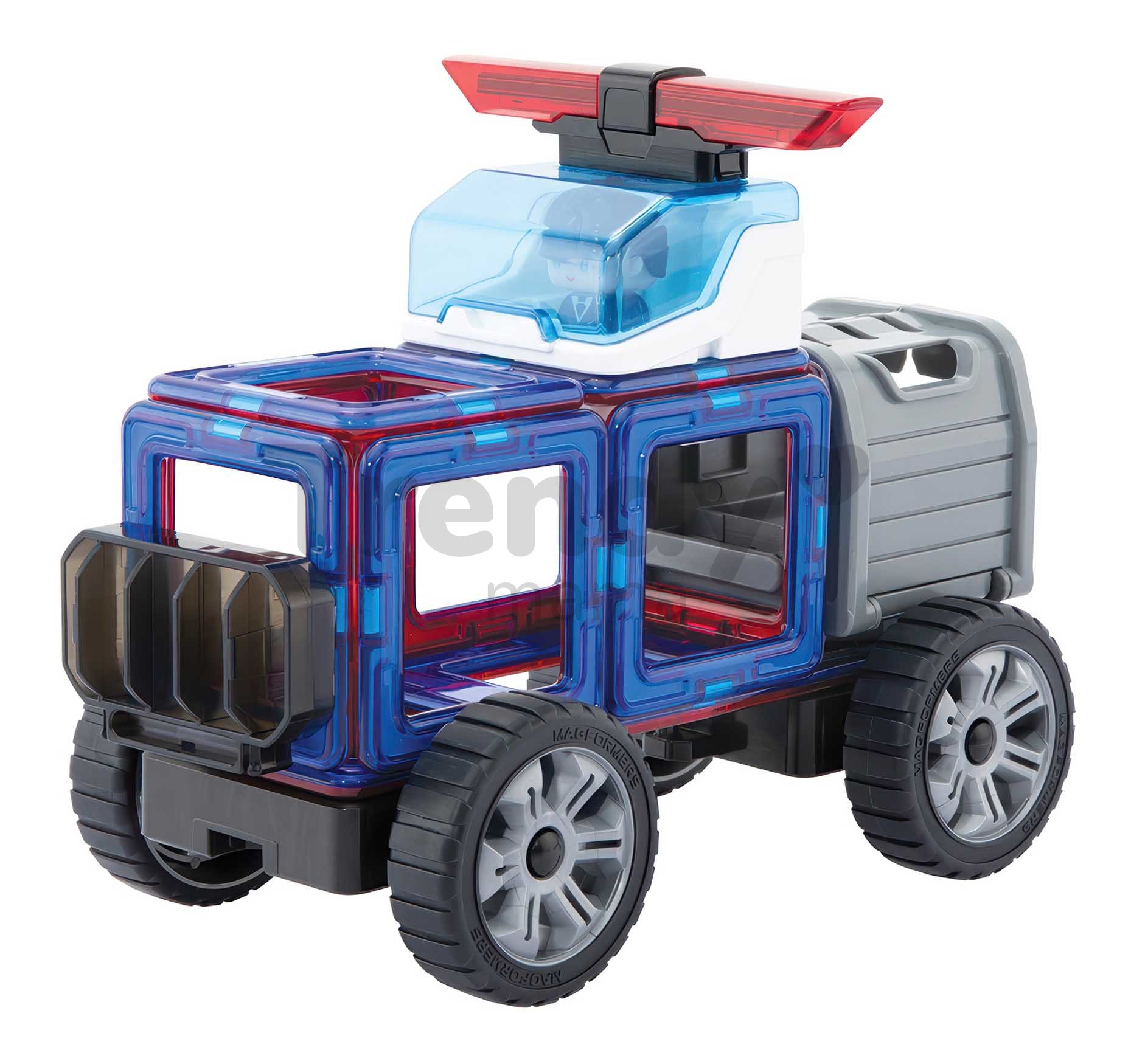Magnetická stavebnice Policie a záchranné složky Magformers z kolekce Police & Rescue potěší chlapce a dívky od 3 let. Základní 26dílná stavebnice je vybavena dílky různých tvarů se silnými vnitřními magnety, které se navzájem přitahují a rychle se spojují. Děti se naučí postavit vozidla záchranných složek a policie, s kvalitními dílky děti vytvářejí 2D i 3D konstrukce, naplno se ponoří do světa fantazie a představivosti. Při kreativním tvoření si zlepšují jemnou motoriku, logické myšlení a rozvíjí prostorové vidění. Hravou formou se zároveň učí rozeznávat barvy a učí se základy geometrie.