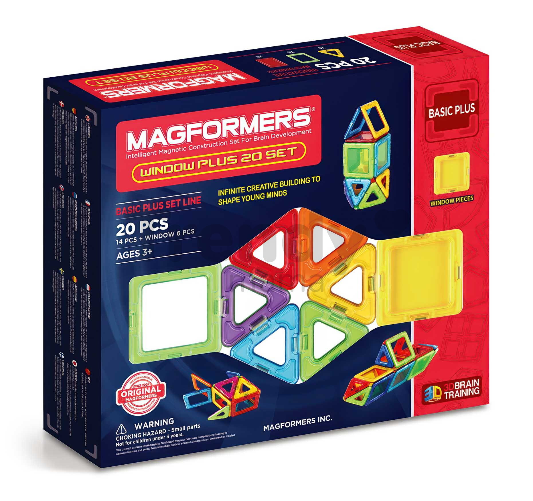 Magnetická stavebnice Windows 3D Magformers z řady Basic Plus představuje skvělý dárek pro všechny kreativní děti od 3 let. Stavebnice obsahuje 20 barevných dílků (14 klasických a 6 okének), které jsou vybaveny vnitřními magnety, které se navzájem přitahují a rychle se spojují. Dětem poskytují maximální stabilitu při každé konstrukci, díky nim vytvářejí 2D a 3D konstrukce, naplno se ponoří do světa fantazie a představivosti. Při kreativním tvoření si zlepšují jemnou motoriku a logické myšlení. Hravou formou se zároveň učí rozeznávat barvy a učí se základy geometrie.