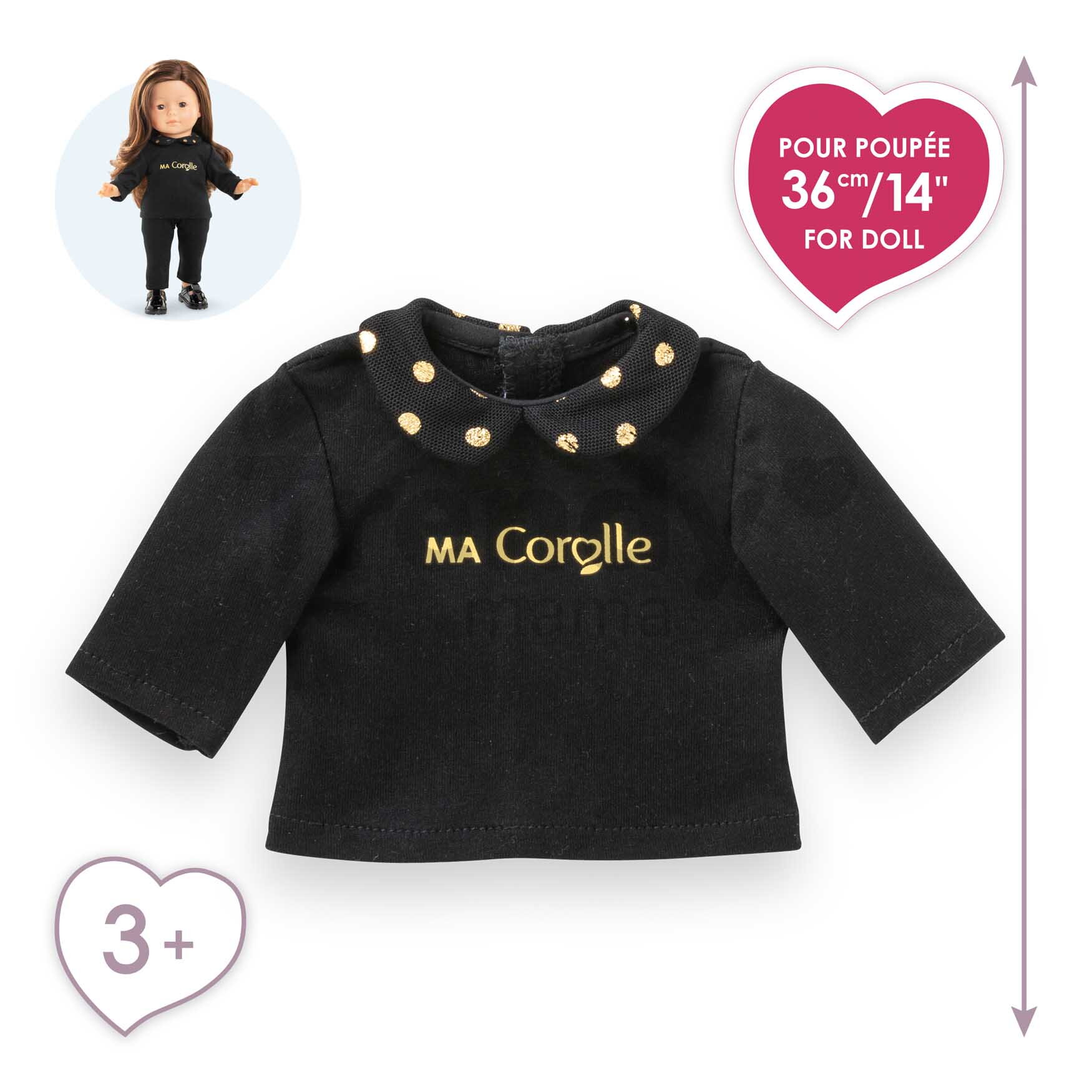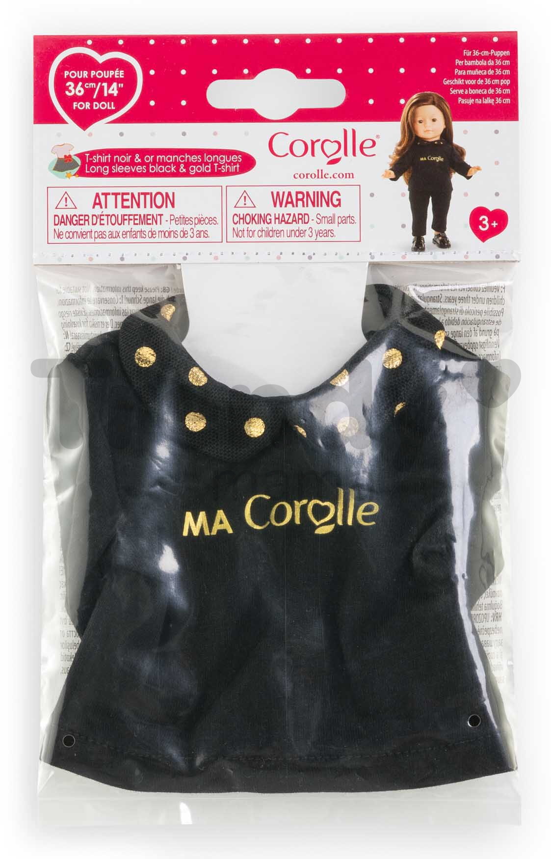 Panenka, která má styl, pochází z rodiny Corolle! Nádherné tričko s dlouhým rukávem pro panenku Black & Gold T-shirt Ma Corolle z dílny francouzské značky Corolle promění každou hru s panenkou na neuvěřitelný zážitek. Černé tričko s límečkem a zlatými detaily je určeno pro panenku Ma Corolle o velikosti 36 cm a je důkladně propracováno do toho nejmenšího detailu. Rozkošné tričko je vyrobeno z jemného, ale kvalitního materiálu, který je velmi příjemný na dotek i pohlazení.
