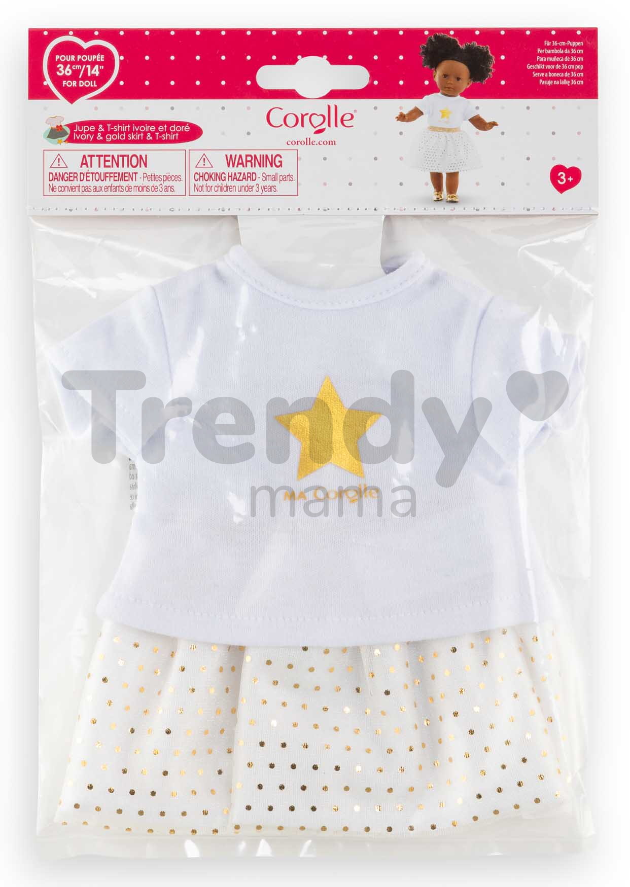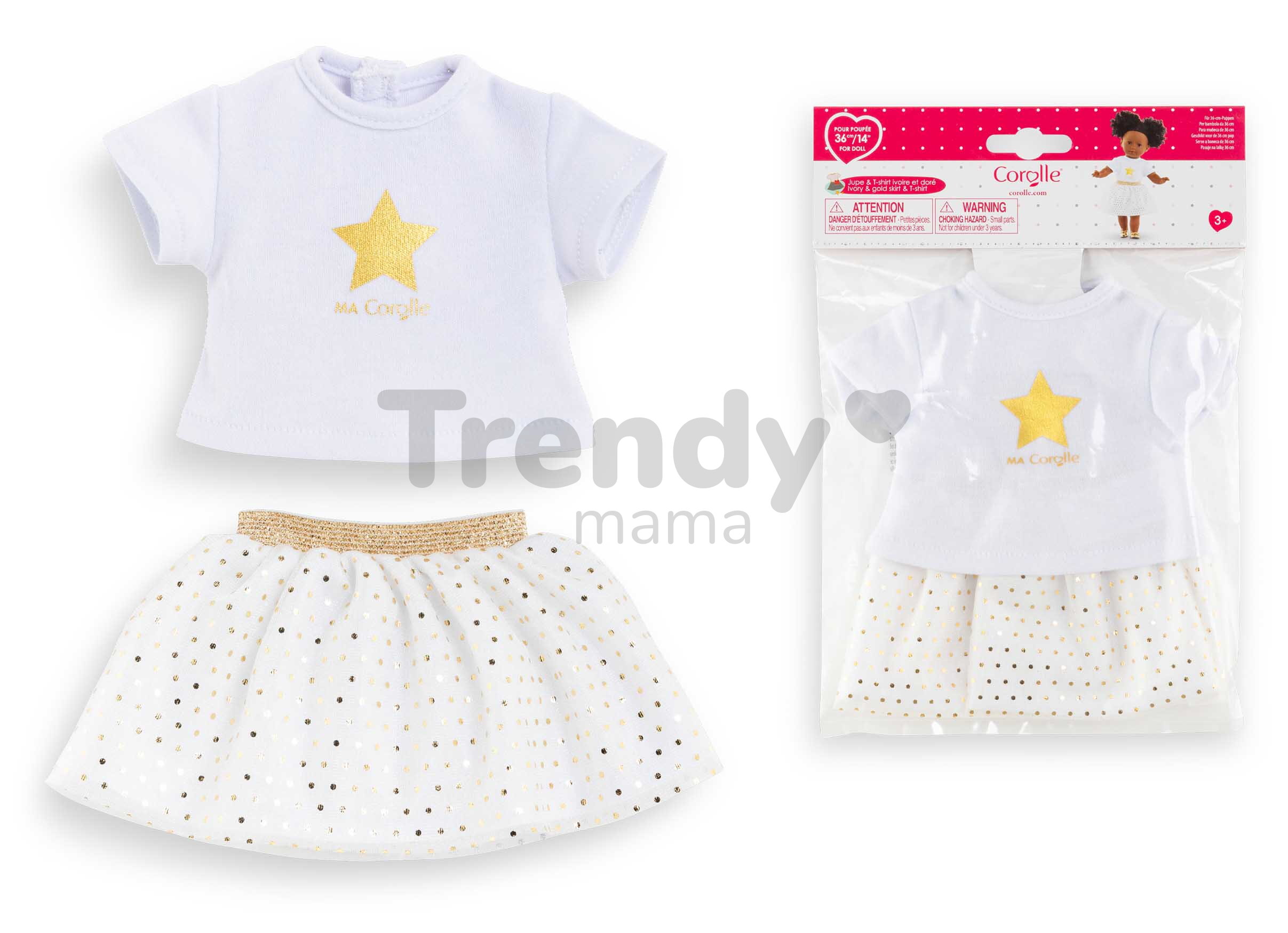 Okouzlující tylová sukýnka a tričko s potiskem jsou určeny pro panenku Ma Corolle o velikosti 36 cm a připomínají skutečné oblečení pro děti. Toto prvotřídní oblečení pro panenku Corolle je vyrobeno z jemného, ale kvalitního materiálu, který je velmi příjemný na dotek i pohlazení. Výjimečný dvoudílný outfit působí na první pohled jako oblečení od módního návrháře a dětem přinese spoustu nových zážitků a krásných vzpomínek.