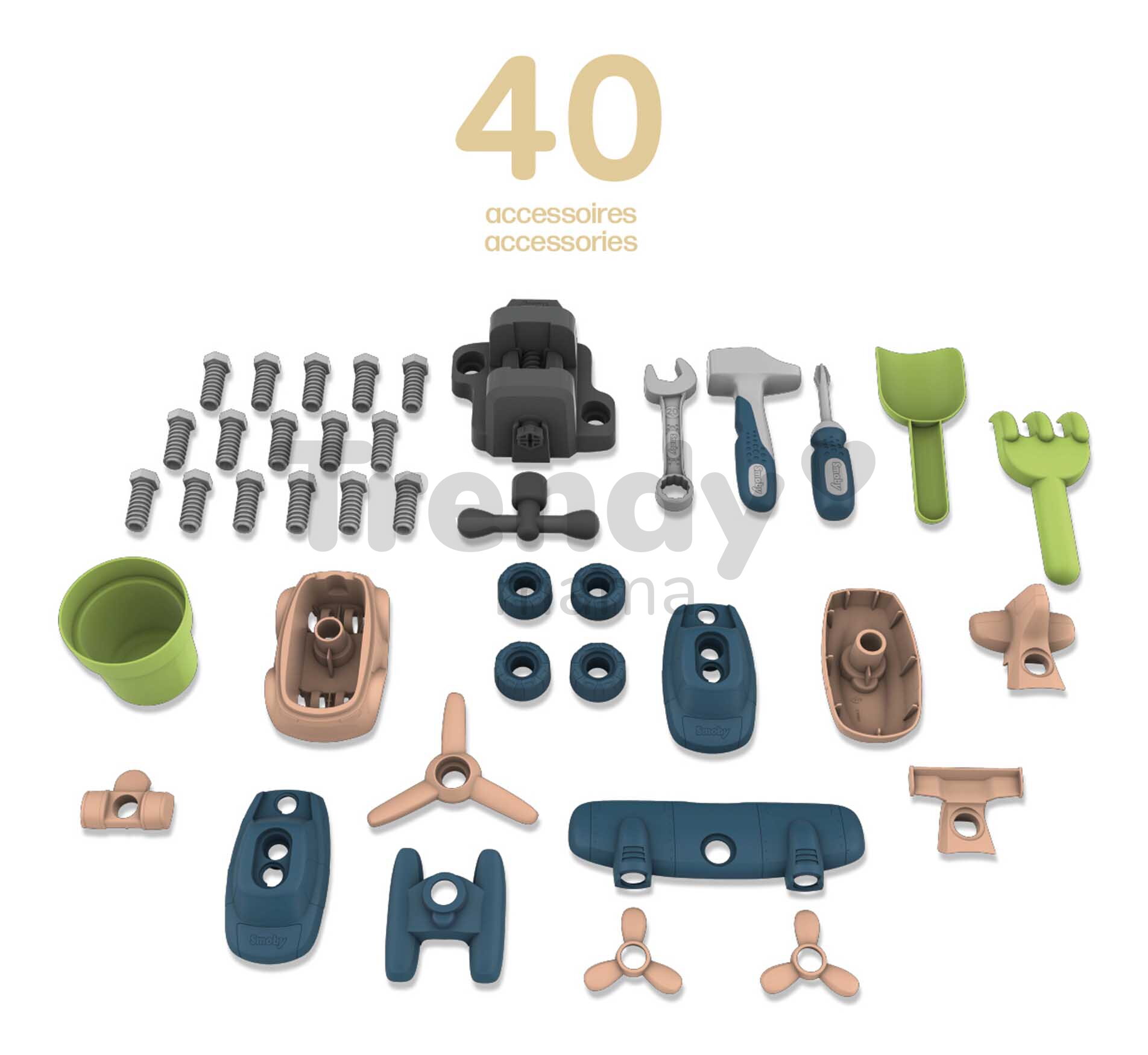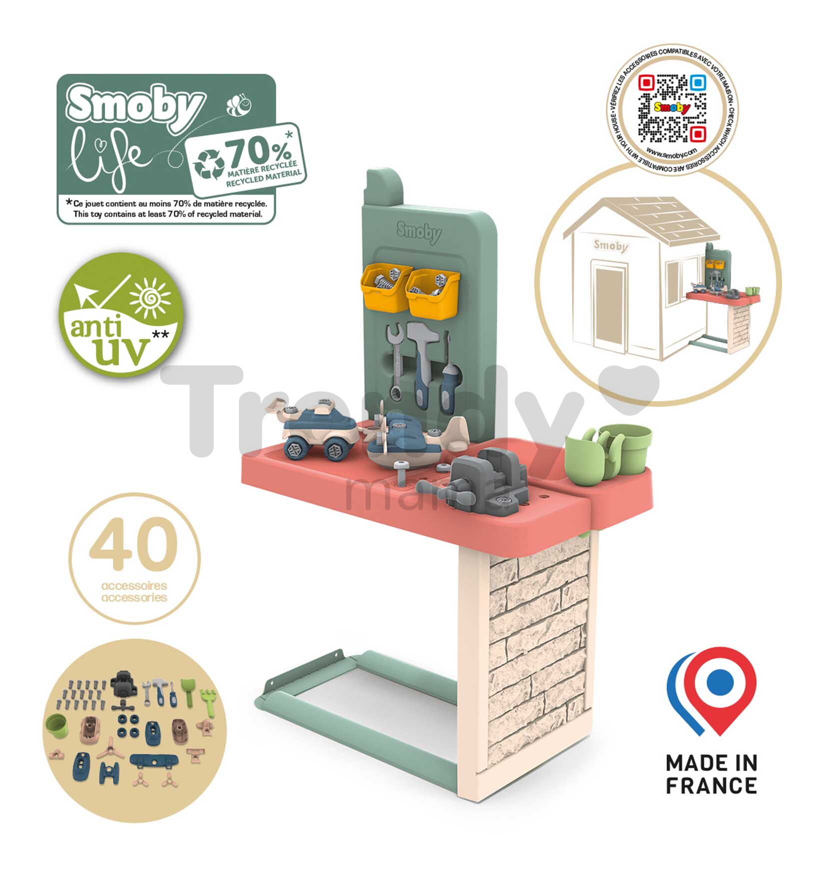 Originální doplňky a rozšíření k dětským domečkům Smoby. Pracovní dílna s 39 doplňky a stavebnicí auta s pracovním nářadím potěší každé kreativní dítě už od 2 let.