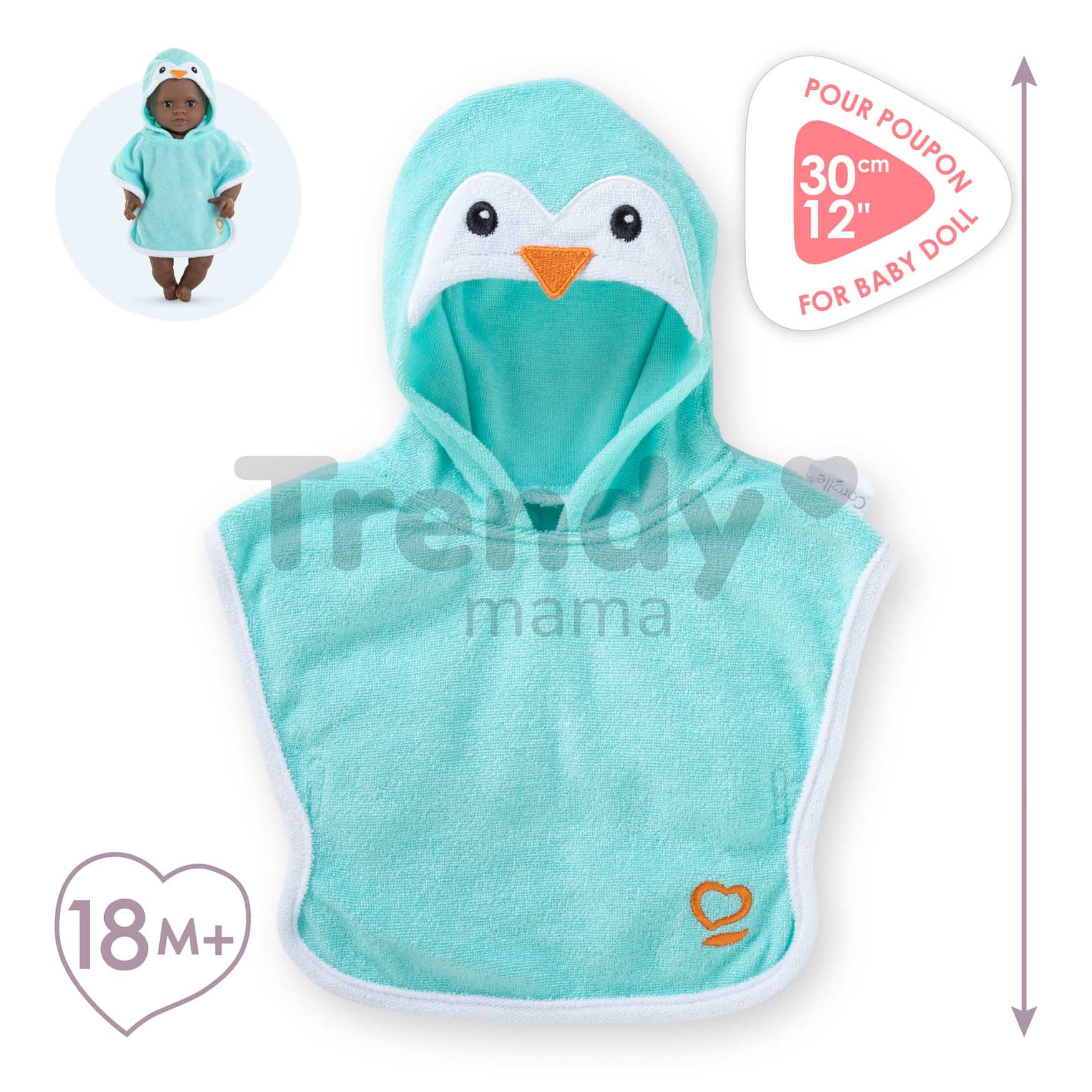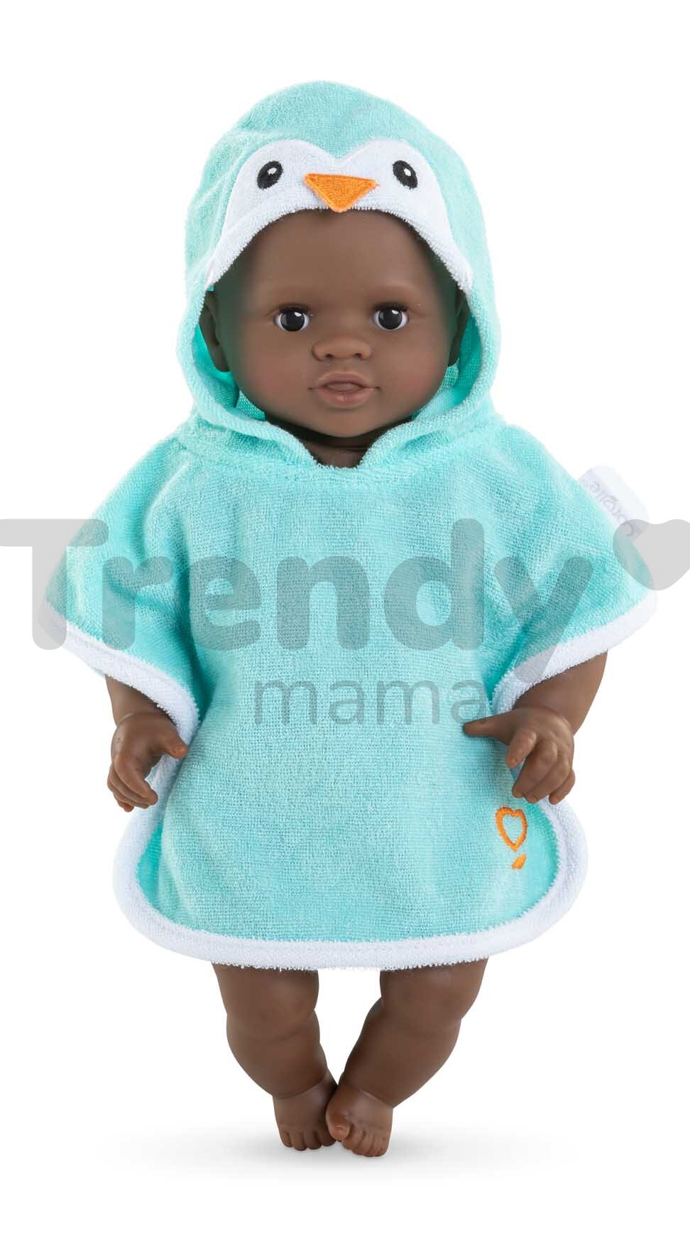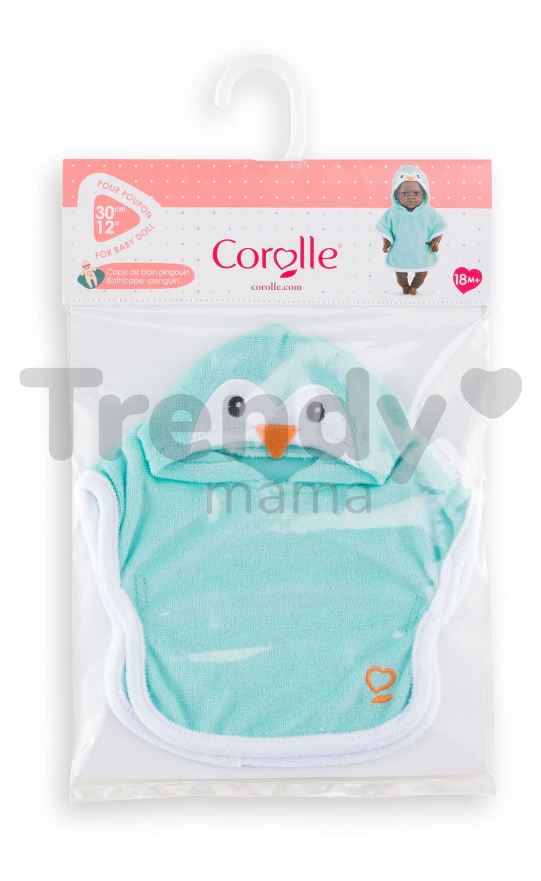 Krásný župan pro panenku Bathcape Penguin Mon Premier Poupon z dílny francouzské značky Corolle promění každou hru s panenkou v nezapomenutelný zážitek. Roztomilý župan s kapucí s motivem tučňáka vypadá k nerozeznání od skutečného oblečení pro děti a stane se neodmyslitelnou součástí hry s panenkou. Krásný tyrkysový župan pro panenku Mon Premier Poupon o velikosti 30 cm má důkladně propracované detaily a děti jej mohou s radostí kombinovat s ostatními módními doplňky značky Corolle.
