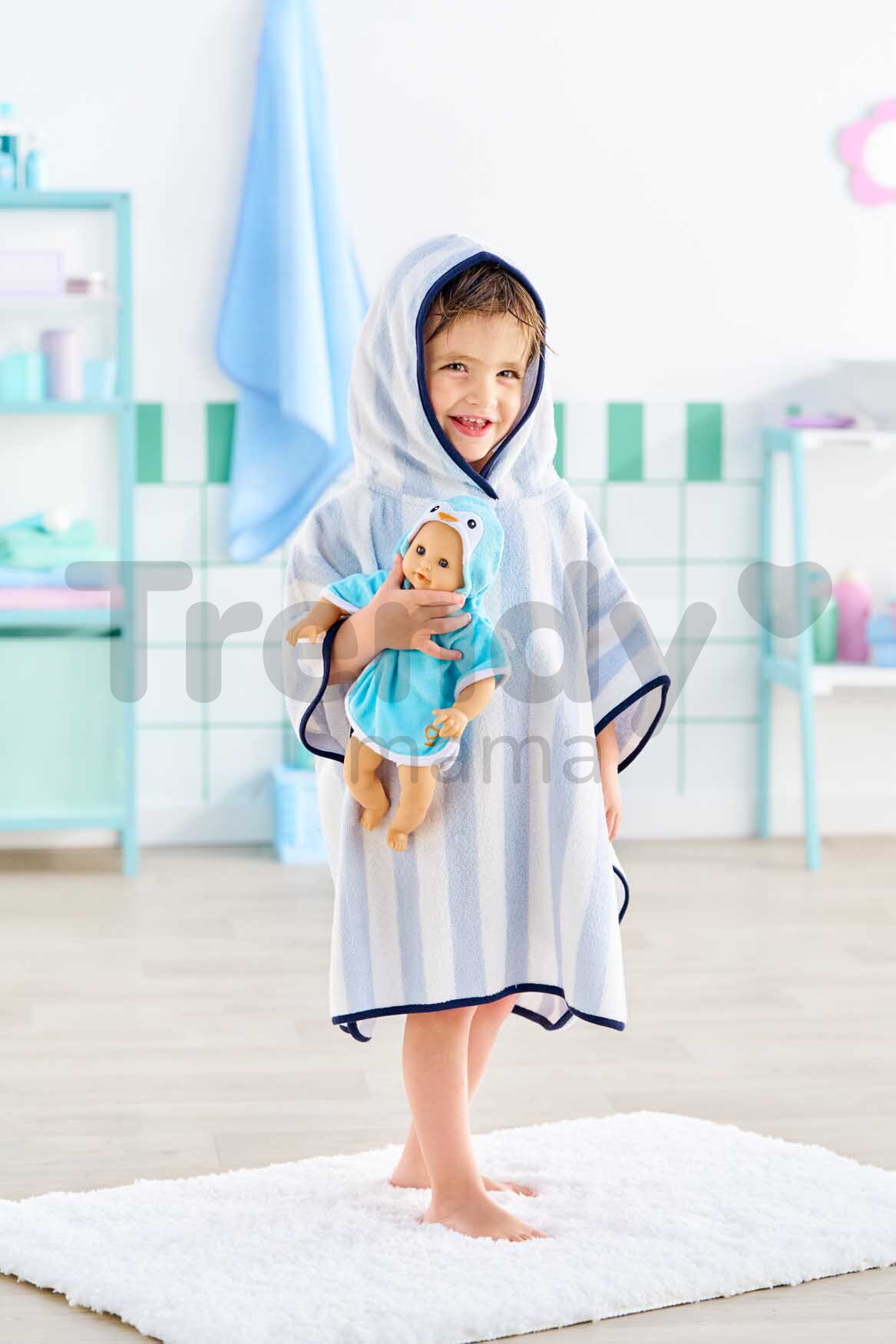 Designový tyrkysový župan s kapucí dovolí převlékat panenku kdykoli se jim zachce a perfektně doplní rituál večerní hygieny. Dokonale propracované detaily tohoto oblečení a prvotřídní materiály zpestří každou hru s panenkou, která rozvíjí dětskou fantazii, ale také komunikační schopnosti a hmatovou citlivost.